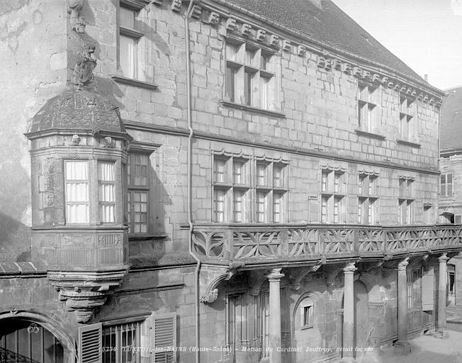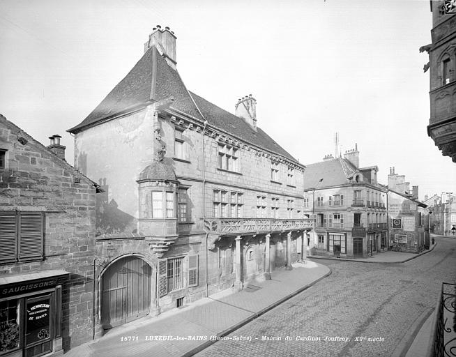 La maison dite du Cardinal Jouffroy est un hôtel particulier situé à Luxeuil-les-Bains, le long de la rue principale, près de la porte Saint-Nicolas. Elle porte le nom de Jean Jouffroy, abbé de Luxeuil, évêque d'Arras puis d'Albi et cardinal. L'édifice est connu sous plusieurs appellations — maison Jouffroy, maison du bailli, maison ou hôtel de Perrin Jouffroy (père du cardinal) ou du cardinal Jouffroy — aucune n'étant attestée avant l'époque moderne. Construite en pierre de taille, en grès, elle présente des similitudes avec l'hôtel Thiadot et la Tour des échevins, qui appartenaient également à des membres de la famille Jouffroy. L'identité de son constructeur reste incertaine : il s'agit sans doute de Perrin Jouffroy (père du cardinal), d'Henri, frère du cardinal, ou de Jean lui‑même lorsqu'il était abbé de Luxeuil. À l'origine, l'hôtel avait probablement un plan en U s'ouvrant à l'ouest sur un jardin menant aux remparts. La façade sur rue se distingue par un balcon monumental au premier étage, qui, jusqu'au XIXe siècle, se prolongeait le long de la façade nord. Le balcon repose sur neuf corbeaux ; les consoles et les clefs de voûte qui les séparent sont sculptées, la plus célèbre représentant trois lapins reliés par seulement trois oreilles. Au milieu du XVIe siècle (certainement entre 1545 et 1552), Henri Jouffroy fit agrandir la maison vers le sud en y ajoutant une partie de style Renaissance comprenant une échauguette et un riche décor sculpté. D'importantes transformations s'opérèrent aux XVIIe et XVIIIe siècles, d'autant que l'hôtel souffrit du tremblement de terre du 12 mai 1682 ; c'est sans doute à cette époque que quatre colonnes de remploi vinrent soutenir le balcon. L'hôtel appartint successivement aux familles Goffinet, aux Saint-Mauris, au sieur de Lambrey, à François Rance (auditeur à la Chambre des comptes) en 1762, à l'avocat Étienne Laborey, puis à la famille Fraissignes pendant plus d'un siècle, jusqu'en 1906. Il est classé au titre des monuments historiques depuis le 10 novembre 1921 et l'architecte des monuments historiques Marcel Texier y mena d'importants travaux de remise en état. La ville de Luxeuil en fit l'acquisition et y installa l'office de tourisme. Lors de la séance du 19 janvier 2017, le conseil municipal valida la vente de la demeure à une famille de Beaune déjà propriétaire de six châteaux en France.