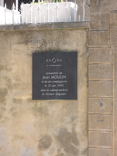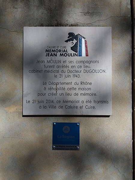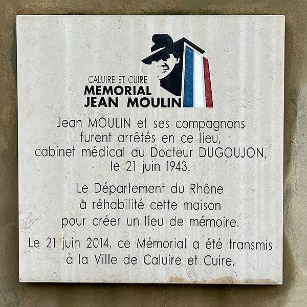 La maison dite du docteur Dugoujon, demeure bourgeoise du XIXe siècle située à Caluire-et-Cuire (Rhône), est aujourd'hui inhabitée. Mise à disposition par le docteur Dugoujon, elle a été le lieu, le 21 juin 1943, de l'arrestation par Klaus Barbie de Jean Moulin et de plusieurs responsables de la Résistance à Lyon, dont André Lassagne, Albert Lacaze, Raymond Aubrac et Bruno Larat. Cette arrestation survint à la suite d'une dénonciation supposée ou d'une imprudence attribuée au résistant René Hardy. René Hardy, seul à avoir les mains ligotées tandis que les autres étaient menottés, réussit cependant à s'enfuir lors de l'intervention. Jean Moulin fut identifié et interrogé par Klaus Barbie à la prison Montluc de Lyon, puis transféré à la Gestapo de Paris où il fut torturé ; il mourut le 8 juillet 1943 aux environs de Metz dans le train Paris–Berlin. À proximité de la maison, une statue de Jean Moulin a été inaugurée le 19 décembre 2004, à l'occasion du 40e anniversaire de l'entrée de ses cendres au Panthéon. La maison du docteur Dugoujon est inscrite au titre des monuments historiques depuis le 17 juillet 1990 et a reçu le label Maison des Illustres en 2011. Une plaque commémorative rappelle ces faits sur le site.