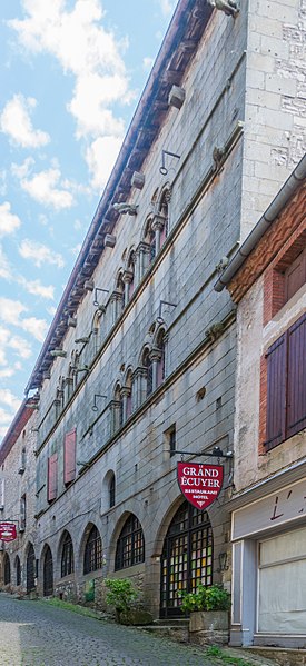 La maison du Grand Écuyer, dite aussi maison Séguier, est une maison gothique de Cordes-sur-Ciel (Tarn) classée monument historique depuis le 26 octobre 1907. L'édifice actuel réunit trois parcelles correspondant à trois maisons médiévales, dont celle qui a donné son nom à l'hôtel installé sur place au moins depuis les années 1960 (C. Portal, 1965, p. 29). L'établissement a été repris vers 1980 par Yves Thuriès, double Meilleur ouvrier de France en 1976 ; le restaurant, devenu une table réputée, a fermé en 2010. Construite au Moyen Âge par une riche famille cordaise, la maison fait partie des édifices qui ont valu à Cordes-sur-Ciel le surnom de « cité aux cent ogives » en raison de sa forte proportion d'édifices civils gothiques. Elle date en majeure partie du XIVe siècle, mais a subi des ajouts et des transformations jusqu'au XVIIIe siècle. Son nom, partagé avec les maisons du Grand Veneur et du Grand Fauconnier, est lié à une légende qui faisait de Cordes un lieu de repos lors des chasses du comte de Toulouse ; cette explication est infirmée par la chronologie, la construction étant postérieure d'environ cinquante ans à la fin de la dynastie des comtes de Toulouse en 1271. Typique des maisons gothiques, l'édifice compte trois étages. Au rez-de-chaussée, cinq arcades s'ouvrent sur la rue. Le premier étage présente deux paires de baies géminées à colonnettes, surmontées d'un oculus triangulaire. Le second étage comporte deux groupes de deux paires de baies géminées, leurs petites colonnettes portant des chapiteaux ornés de feuilles de chêne et de glands. La façade est richement sculptée : on y reconnaît des animaux — lion, lapins, chien, bœuf —, des personnages tels qu'un joueur de cornemuse, un guerrier et un joueur de violon, ainsi que des êtres fantastiques comme des chimères et une bête à tête de chien et queue de lézard, certaines chimères présentant des ailes de chauve‑souris. Certaines sculptures évoquent des gargouilles, mais leur position à mi-hauteur leur confère un rôle essentiellement décoratif. Pour Charles Portal, la maison est un modèle d'harmonie ; il souligne la simplicité des fenêtres par rapport aux maisons du Grand Fauconnier et du Grand Veneur, la grande originalité des motifs et la qualité exceptionnelle du grès, dont la surface paraît encore fraîchement travaillée.