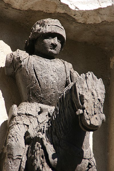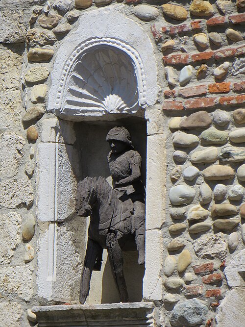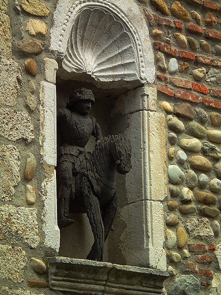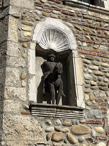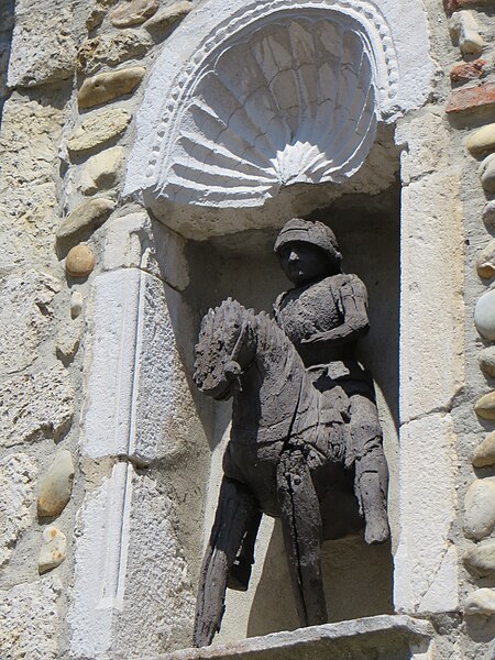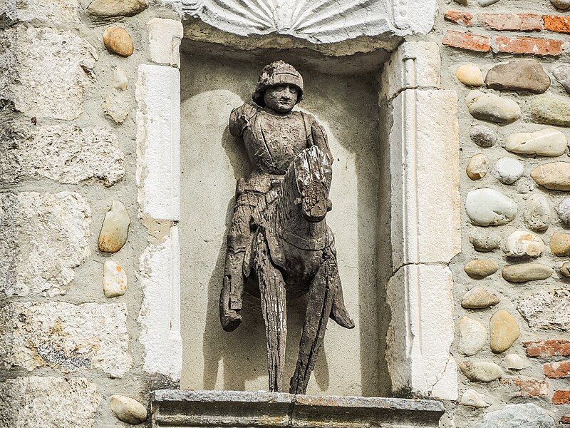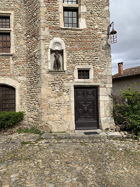 La maison du Petit-Saint-Georges, située place de la Halle à Pérouges dans l'Ain, est ornée d'une représentation de saint Georges, patron de la ville. Une légende locale rapporte qu'il aurait combattu et vaincu le dragon figurant sur le blason communal. Ce dragon est également présent dans l'église-forteresse, où l'on trouve une autre représentation de saint Georges. La maison est inscrite au titre des monuments historiques depuis le 11 octobre 1929.