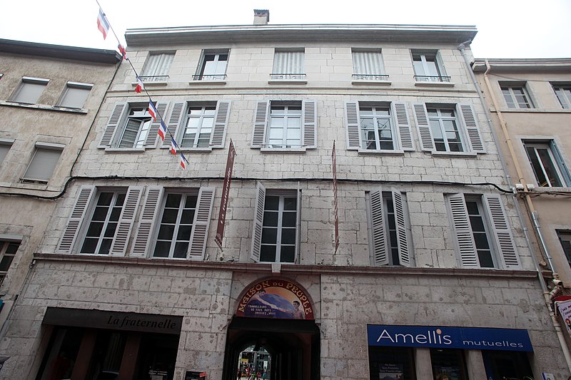 La Maison du Peuple se situe au 12 rue de la Poyat à Saint-Claude (Jura), une voie nommée Poyat — « montée » — en 1874 et qui relie le centre-ville aux quartiers de la ville basse. La demeure d’origine, dite maison Dumoulin, est attestée au XVIIIe siècle et fut agrandie par l’adjonction de deux ailes entre 1855 et 1874. Guérin Dumoulin y aurait vraisemblablement vécu ; la maison passa ensuite à sa descendance et, en 1894, Paul Dumoulin la vend à la coopérative d’alimentation la Fraternelle, créée en 1881. Issue d’un cercle ouvrier fondé vers 1877–1878 et dont les statuts furent adoptés le 7 février 1880, la coopérative aménagea dans le bâtiment un café, une épicerie, une boulangerie et des logements, puis développa des succursales en ville et dans les communes avoisinantes. Sur des plans datés de 1902 par Charles Meunier, la Maison du Peuple est édifiée dans les jardins entre 1908 et 1910 par l’entrepreneur Blanc sous la direction de l’architecte Paul Mouret. Dans les années autour de 1920, le complexe s’enrichit d’une imprimerie installée par la surélévation d’un bûcher en 1919, d’un gymnase et d’autres aménagements ; la maison Dumoulin elle‑même est surélevée en 1928. Durant les années 1920, l’ensemble abrite une grande diversité d’activités : épicerie, boulangerie, restaurant, bureaux, salles de réunion et logements dans la maison Dumoulin ; dans la Maison du Peuple se trouvent théâtre, café, imprimerie, bibliothèque, charcuterie, crémerie, atelier de torréfaction, chambres froides, entrepôts et celliers, écurie, remises et atelier de réparation automobile, ainsi que des équipements de service comme un monte-charge et une voie Decauville desservant les étages. Le bâtiment accueille également le gymnase, des sièges syndicaux, la Bourse du travail et le journal le Jura Socialiste. La Fraternelle connaît une forte expansion commerciale : 150 sociétaires en 1886, 719 en 1914, 4 173 en 1925, puis 135 personnes en 1980, et elle dispose de nombreuses succursales et points de vente. En 1896, Henri Ponard fonde l’« École de Saint‑Claude » en instaurant des statuts coopératifs selon lesquels les bénéfices alimentent un fonds de réserve destiné à une caisse sociale (secours mutuel, caisse chirurgicale, assurances, retraites) et au financement d’autres coopératives ; ce système est abandonné en 1965. La société devient Les Coopérateurs du Jura en 1965 et fusionne avec l’Union des Coopérateurs en 1984 ; la même année, les bâtiments sont vendus à l’association culturelle la Fraternelle. Deux salles de cinéma sont aménagées en 1984 et 1985, l’imprimerie est réhabilitée en 1991 et un escalier extérieur est construit en 1992. L’existence d’un fonds d’archives privées est signalée. L’ensemble des façades et des toitures, la cabine du projectionniste, le passage voûté et l’escalier du bâtiment sur rue, l’escalier des étages de soubassement, l’ancienne bibliothèque et sa salle de lecture, le théâtre, ainsi que le café et son décor ont été inscrits au titre des monuments historiques par arrêté du 22 novembre 1993.