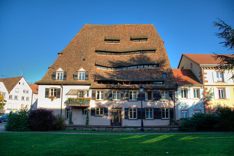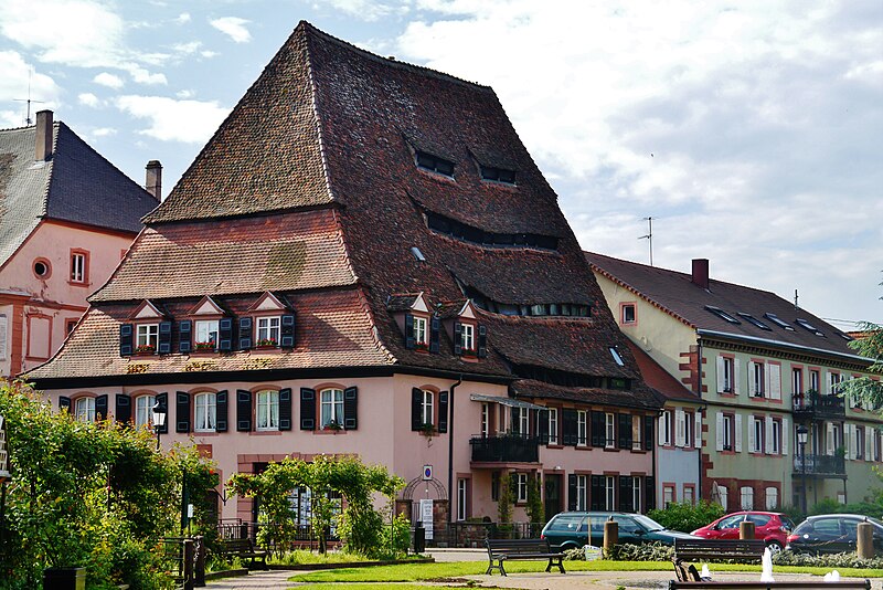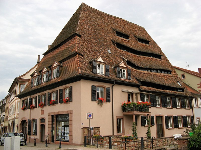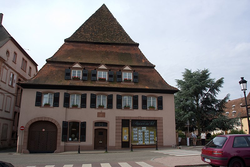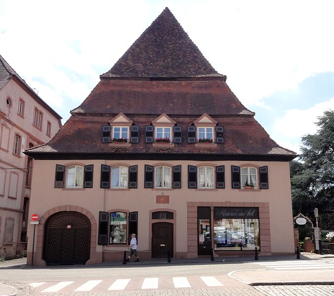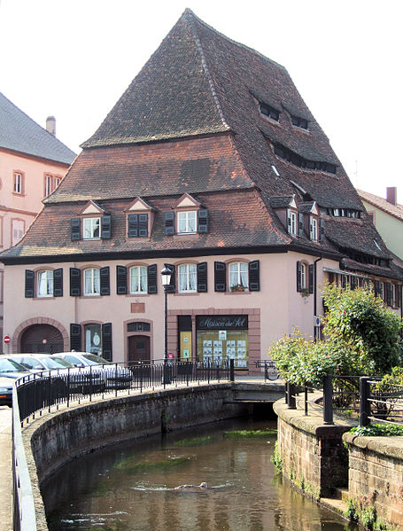 La Maison du sel, située 2 et 2a rue du Marché-aux-Poissons à Wissembourg (Bas-Rhin), est un immeuble emblématique de la ville inscrit au titre des monuments historiques depuis 1998. Peut-être édifiée ou reconstruite en 1448, comme l'indique une inscription encastrée dans la façade et refaite en 1905, elle se distingue par son imposant comble et sa forte volumétrie. L'inscription allemande mentionne la construction du « bâtiment supérieur » en 1448, la réalisation, cinquante ans plus tard, d'une « Dresz kammer » et cite Hans Ooschmann et Peter Kosgler comme administrateurs (Pfleger) de l'hôpital, ainsi que Hans Kolben comme Spitalmeister. L'ancien hôpital, attesté dans le Bruch dès 1234, possédait une vaste salle des malades haute de plus de cinq mètres : ses supports monumentaux subsistent, aujourd'hui partiellement masqués. Benoît de Neuflieu, dans sa description de 1775, signale une pièce carrée voûtée d'ogives dont la clé porte les armes de la ville ; la localisation exacte de la chambre forte reste toutefois problématique. Le toit a pu servir primitivement de séchoir pour le linge de l'hôpital, et le premier niveau du comble fut parfois utilisé comme salle pour les malades de l'ambulance militaire. À partir du XVIe siècle, l'édifice est désigné Metzig et Salzhaus ; il servit probablement d'abattoir principal entre 1526 et 1550 et continua d'être employé ponctuellement par les bouchers jusqu'à la Révolution. L'usage comme magasin à sel est attesté depuis 1578, mais il est probable que le rez-de-chaussée fut destiné au stockage du sel dès 1526 ; le mesureur du sel y avait sa résidence. Un second établissement hospitalier fut construit vers le sud vers 1510 (rue des Bouchers), et l'hôpital municipal fut transféré en 1526 dans l'ancien couvent des augustins, puis en 1553 dans celui des dominicains. D'importants travaux au XVIIIe siècle affectèrent le bâtiment, notamment la suppression du clocheton qui abritait la Spitalglocke, et des restaurations significatives eurent lieu en 1777, 1778 et 1790 sur le mur pignon nord et la charpente. La maison fut vendue par la ville en 1792 à Henri Rieffenach, l'exclusion du lanternon et de sa cloche étant stipulée ; Sébastien Heinrich, qui acquit la maison en 1798, racheta ce lanternon en 1800 pour le faire démolir.