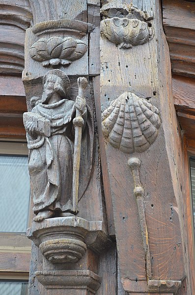 Maison à pans de bois située sur la place des Halles à Brou (Eure-et-Loir). Datée, selon les sources, des XVe-XVIe siècles, elle est à un étage et présente une façade à colombages. Des poutres moulurées reposent sur des piliers ornés de sculptures en ronde-bosse : à gauche une femme en robe longue coiffée d’un voile, à droite une figure pouvant être interprétée comme saint Jacques, avec coquille et bâton de pèlerin. Avec une autre maison de bois de la place, elle fait partie des derniers vestiges de la cité du XVe siècle. L’édifice est classé au titre des monuments historiques (1922).