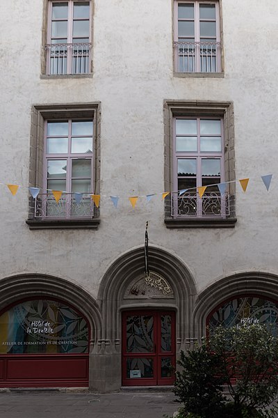 Datant de la fin du XVe siècle, cet édifice de Brioude (Haute‑Loire, Auvergne) appartient à la ville et a fait l’objet d’une rénovation complète. Le bâtiment a appartenu aux chanoines‑comtes de Brioude jusqu’à la fin de l’Ancien Régime. La façade sur rue présente au rez‑de‑chaussée une haute voussure en tiers point dont les moulurations prolongent celles de deux voussures sur bahut ; la façade sur cour comporte deux fenêtres et une tour octogonale. Une représentation de l’Annonciation, visible au‑dessus de la porte d’entrée, et une peinture murale datée du XVIe siècle ornent les parois ; ces éléments ont suscité l’hypothèse d’un lien avec un officier du chapitre de la collégiale Saint‑Julien, hypothèse non confirmée par les documents. La façade sur rue et le mur intérieur recouvert de la peinture de l’Annonciation sont inscrits au titre des monuments historiques par arrêté du 25 avril 1963. L’édifice, connu sous le nom d’hôtel de la Dentelle, sert de centre d’exposition, de création et de présentation de la dentelle. Il abrite l’association fondée dans les années 1980 à l’initiative d’Odette Arpin, dont l’objectif est de valoriser la dentelle des pays du Puy. Quatre Meilleures Ouvrières de France y donnent des cours et contribuent à la pérennité de la dentelle dite « de Cluny » en créant des modèles contemporains, l’ensemble des techniques formant ce que l’on appelle le « Cluny de Brioude ». Le lieu comprend des salles d’exposition où se côtoient des pièces de plus de 150 ans et des œuvres contemporaines, de nombreuses expositions temporaires, un atelier de création, un centre d’enseignement proposant des stages et une boutique d’articles pour la dentellerie. Le site est ainsi lié à la tradition de la dentelle du Puy et aux pratiques de la dentelle aux fuseaux, au sein du patrimoine textile et culturel local.