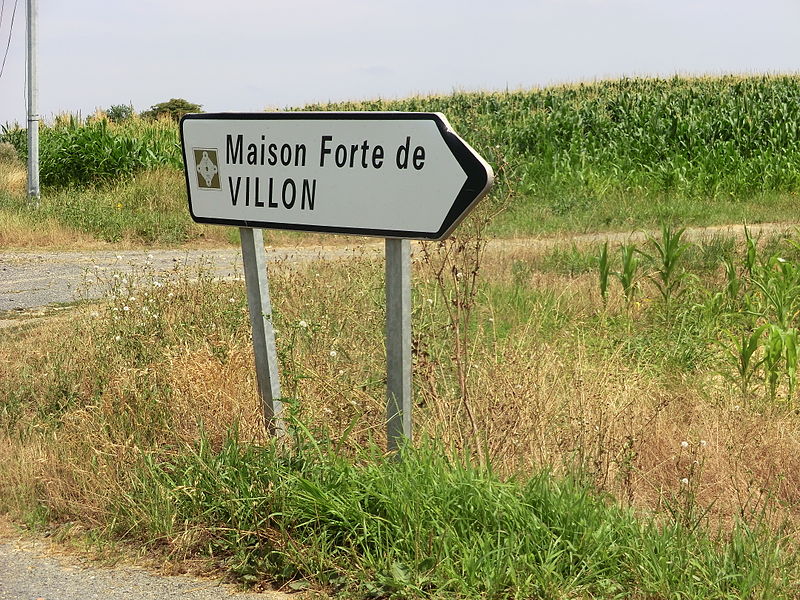 La Maison‑forte de Villon, édifiée au XIVe siècle, était le centre de la seigneurie de Villion et se dresse sur la commune de Villeneuve (Ain), à environ cinq kilomètres au nord du bourg, face à un étang. Elle est classée au titre des monuments historiques par arrêté du 16 octobre 1992. La seigneurie appartenait originellement aux gentilshommes de Villion — Arthaud de Villion (vivant en 1150), Gui de Villion (chevalier, en 1263‑1274) et Étienne (en 1295) — puis passa successivement entre diverses familles et propriétaires cités dans les archives, dont Lyareins/Glareins, la Teyssonnière, de la Baume, Jean Godon, de Naturel, Valeton, Sabran, les Austrein et d'Apchon. Villion fut pris d'assaut en 1378 par le comte Amédée VII de Savoie. Au XVIIe siècle, l'enceinte comprenait encore une chapelle dotée d'une rente de 50 livres et à la charge de trois messes assurées par le curé d'Agnereins, alors responsable de la paroisse. La seigneurie fut ensuite unie à la baronnie de Fléchères et figura dans des dotations matrimoniales; la famille Pourroy de Lauberivière de Quinsonnas y jouissait encore en 1789. Sur le site se remarquent notamment l'entrée, une fenêtre ouvrant sur la cour intérieure et la vue sur l'étang.