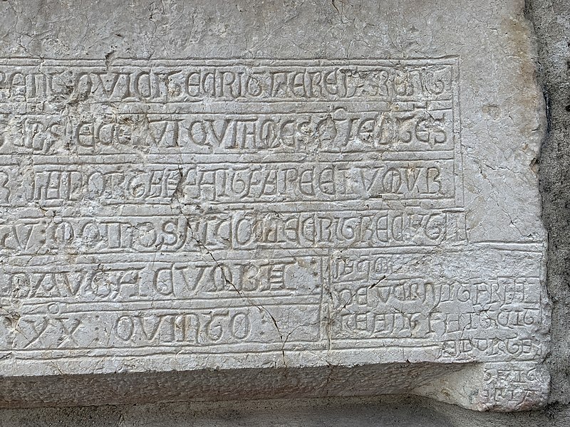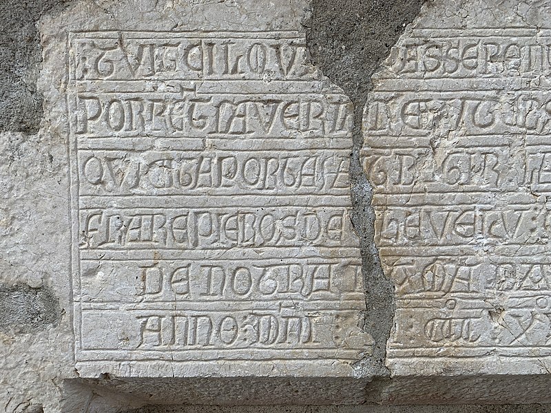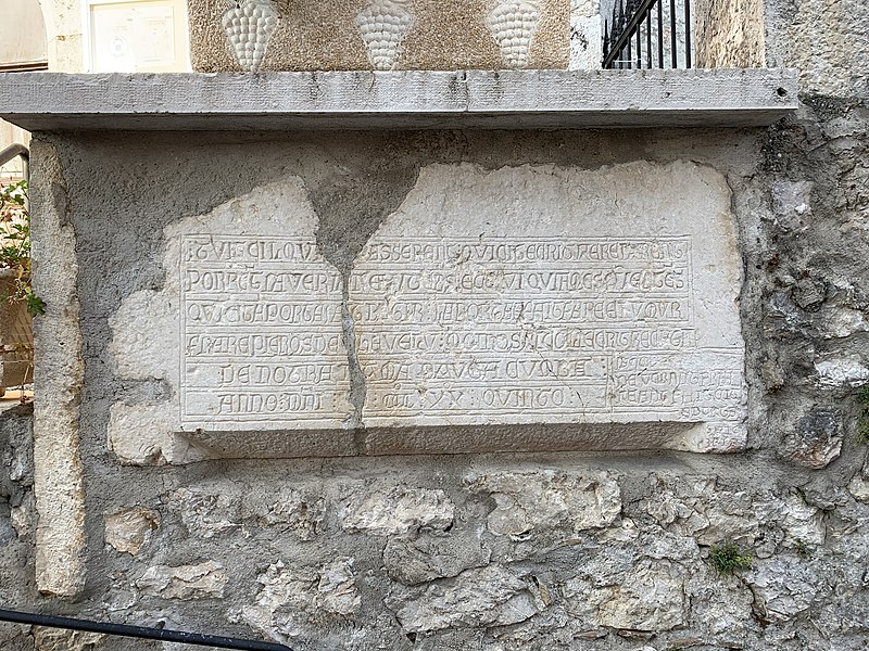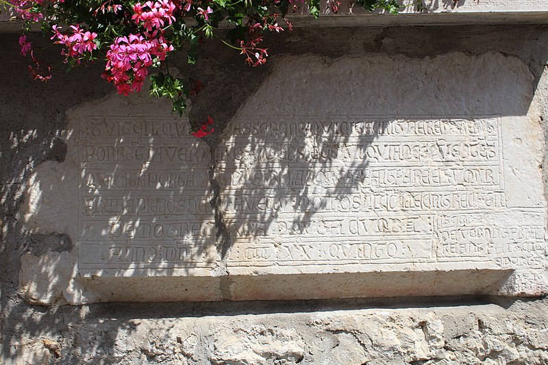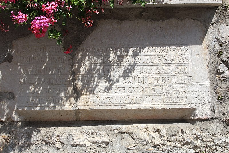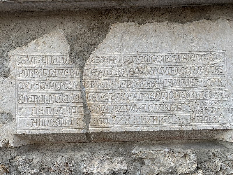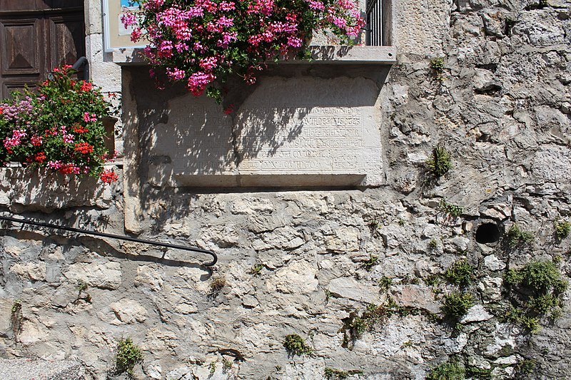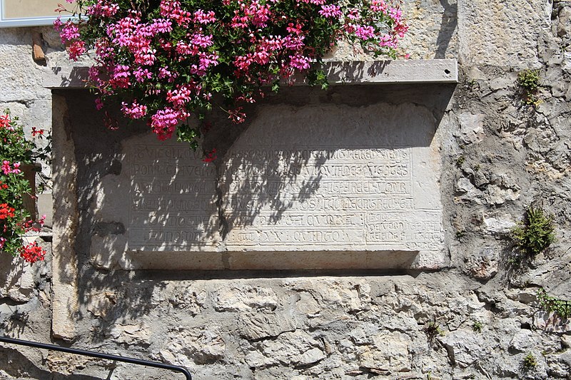 Linteau portant une inscription gothique encastré dans les murs de l'écurie : inscription par arrêté du 13 avril 1933