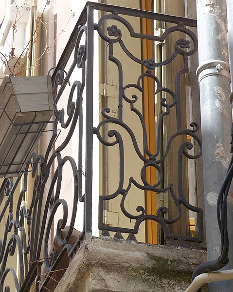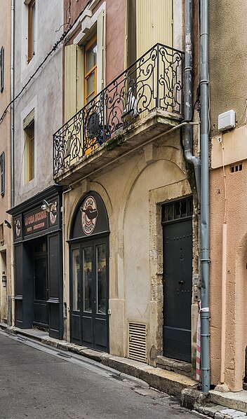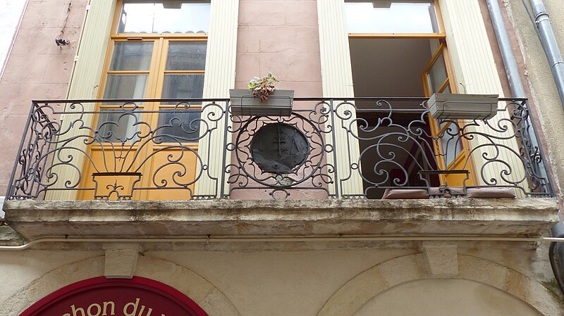 La maison, de plan rectangulaire, est prolongée à l'arrière par une cour bâtie de forme triangulaire, décalée vers le nord. La façade s'ouvrait au rez-de-chaussée par deux arcs en plein cintre. Au premier étage, deux portes-fenêtres donnent sur un grand balcon droit dont la ferronnerie comporte, au droit des baies, deux grands panneaux séparés au droit du trumeau par un petit panneau central. Le médaillon central du balcon représente un navire aux voiles gonflées, voguant sur une mer agitée, peut‑être l'enseigne d'un artisan maritime ou un blason bourgeois. Le style de la ferronnerie paraît dater de la fin du XVIIIe siècle. Les panneaux latéraux sont ornés de fleurons dessinés par des volutes ramifiées, avec de nombreux reboussements, le tout inscrit dans un double encadrement.