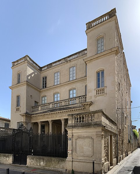 La maison dite Château Fadaise est un hôtel particulier de Nîmes (Gard, Languedoc‑Roussillon), inscrit au titre des monuments historiques en 1964. Elle se situe 12 rue Porte‑de‑France, au sud‑ouest de l'église Saint‑Paul. L'édifice a été construit en 1682, probablement par l'architecte Gabriel Dardailhon, pour Pierre de Serres, seigneur de Saint‑Côme. Son surnom, Château Fadaise, date du XVIIIe siècle et son origine reste incertaine, évoquant tantôt la féérie, tantôt la folie, en référence à l'incongruité de l'ouvrage dans un environnement alors semi‑rural. À l'époque, ce faubourg de Nîmes était principalement occupé par des jardins ; les habitations se concentraient plus au sud, autour du Puits de l'Olivier, et les constructions importantes s'élevaient surtout en bordure des nouvelles promenades, si bien que l'implantation d'un hôtel de cette envergure constituait une singularité. L'immeuble occupe une parcelle en trapèze. La façade sur rue, encadrée par deux tours carrées, ouvre sur une cour d'entrée limitée par deux pavillons à terrasses, contre lesquels s'appuie une grande grille en fer forgé. Le portail en ferronnerie à deux vantaux s'ouvre dans l'axe de la grille, entre deux pilastres et sous un fronton. Le mur de façade, les tourelles et les pavillons d'entrée sont surmontés d'une balustrade continue, qui prolonge une terrasse soutenue par un péristyle à quatre colonnes reposant sur un haut stylobate et portant des chapiteaux composites. La frise décorée de rinceaux et les gracieuses colonnes corinthiennes d'inspiration italienne évoquent la Maison Carrée ; à l'ombre de la colonnade se développe un escalier d'accès dont la rampe, à balustres de pierre, prend appui sur des pilastres surmontés de lions assis. Une galerie relie deux avant‑corps.