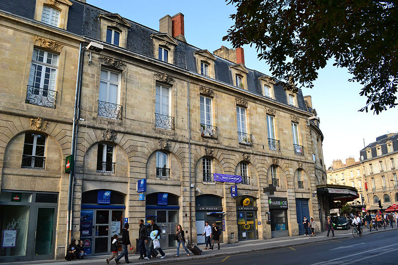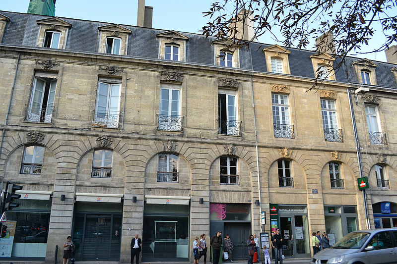 Après la place de la Bourse, la place Gambetta (ancienne place Dauphine) constitue le second ensemble architectural urbain de Bordeaux, où convergent les principales voies. Elle est bordée d'immeubles de la seconde moitié du XVIIIe siècle, édifiés selon une ordonnance classique. Vers 1745, l'intendant de Tourny fit envisager la création d'une place sur des terrains situés à l'ouest des portes Dauphine et Dijeaux. En 1750, les Jurats souscrivirent un emprunt pour fonder et élever les façades des maisons uniformes, composées d'un rez-de-chaussée à arcades, d'un étage, d'un attique et d'un comble. En 1762, l'architecte fit accepter par l'intendant Boutin un nouveau projet de décor plus simple, qui supprimait les avant-corps et les balustrades et surmontait les maisons d'un entablement sobre et d'un comble. La place ne fut achevée qu'entre 1770 et 1780, mais son style reste marqué par la première moitié du XVIIIe siècle. À chacun des angles de la place rectangulaire s'ouvrent deux artères importantes. L'ordonnance des immeubles se caractérise par des façades en pierre de taille ; au rez-de-chaussée, des arcades régulières aux piédroits à bossages encadrent les accès, tandis qu'un entresol, percé de petites fenêtres, s'inscrit dans l'arrondi de l'arcade. Au premier étage, de grandes portes-fenêtres sont couronnées de mascarons sculptés et dotées de balcons en fer forgé ; quelques immeubles comportent en outre un second étage.
