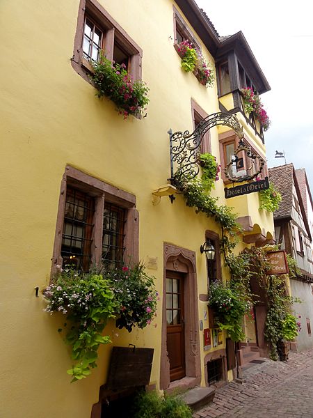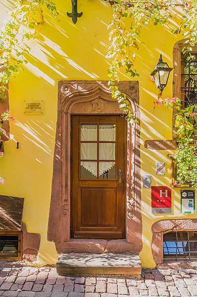 La maison située 3, rue des Écuries à Riquewihr (Haut-Rhin) est inscrite au titre des monuments historiques depuis 1930. Elle présente une porte en accolade datée de 1577 et un portail cintré surmonté d'un oriel à deux étages, dont l'intérieur est en grès et le sommet en pan de bois. L'édifice a été construit en 1577 pour Dominik uf der Bruck par le maître maçon et tailleur de pierre Anthoni Mutzat de Milan, qui fut également chargé en 1579 des travaux de la maison du 5, rue du Cheval. La maison a été endommagée pendant la dernière guerre, comme l'atteste une photographie de 1946. La maison, sa cour et ses dépendances ont été remaniées pour l'installation d'un hôtel-restaurant.