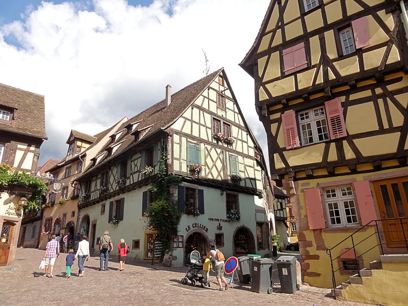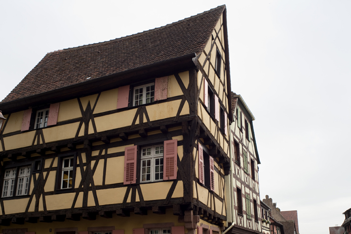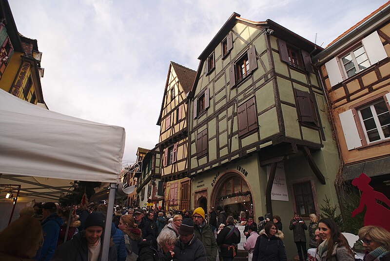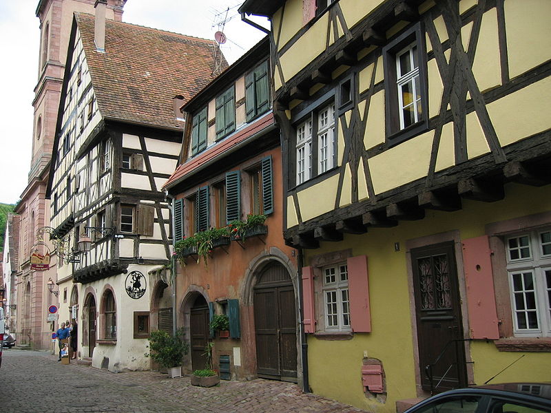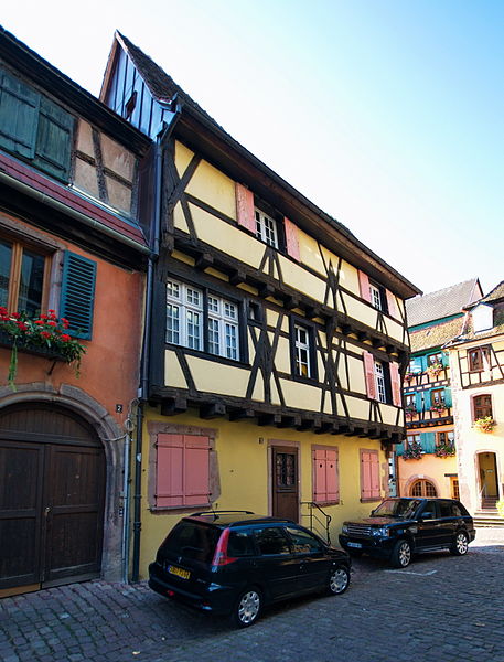 La maison située au 1, rue des Trois-Églises à Riquewihr (Haut-Rhin) est inscrite au titre des monuments historiques depuis 1984. Son pan de bois a été daté par dendrochronologie de 1480, et la demeure est mentionnée pour la première fois en 1510 comme propriété d’un certain Scherer, puis elle appartint plus tard au tailleur Ulrich Meder. Un linteau de fenêtre du rez-de-chaussée porte la date de 1727, indice d’une campagne de transformation qui a probablement remanié l’édifice. Du milieu de la fin du XVIIIe siècle jusqu’en 1912, le rez-de-chaussée a été occupé par une boulangerie. La maison a subi des dommages de guerre; son toit a été restauré après le conflit et certaines pièces du poutrage ont fait l’objet de restauration. Le crépi qui dissimulait le pan de bois a été supprimé en 1967, et aucune fenêtre d’origine ne subsiste. Sur la façade donnant sur la rue du Général-de-Gaulle, le rez-de-chaussée conserve le vestige d’une ancienne baie en plein cintre, probablement issu d’une arcade boutiquière.