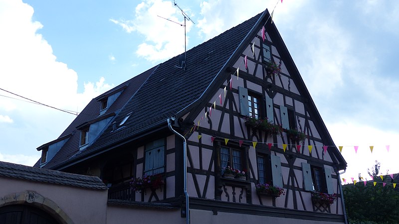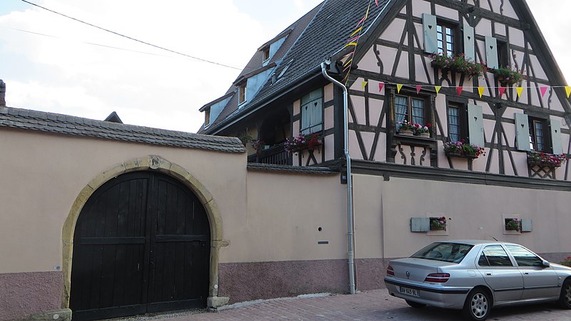 Maison située au 85, Grand-Rue à Turckheim (Haut-Rhin). La porte charretière porte un écu à l'emblème de vigneron et la date 1596. Sur le chambranle saillant d'une fenêtre du logis à l'étage est gravée la date 1713, accompagnée d'une inscription pieuse. L'édifice est inscrit au titre des monuments historiques depuis 1929. Voir aussi la liste des monuments historiques de Turckheim et celle du Haut-Rhin ; des illustrations sont consultables sur Wikimedia Commons.
