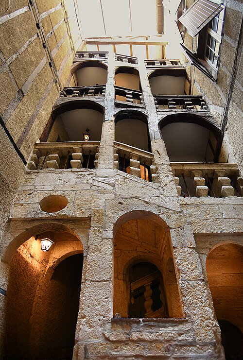 La maison dite Henri IV, située à Auch (Gers, Occitanie), semble avoir été construite à l'origine pour un négociant puis modifiée. Sa façade sur rue conserve un arc en plein cintre correspondant à l'ancienne boutique et une porte de style XVIe siècle dont l'arc surbaissé mouluré est supporté par deux culs-de-lampe représentant des anges phylactères. Près du seuil subsiste un fragment de fût de colonne en marbre blanc. La porte ouvre sur un corridor qui débouche dans une cour où, sur l'une des faces, s'élève un escalier dont la cage est formée par trois murs percés des portes des appartements et un noyau central évidé. Le rez-de-chaussée est en pierre ; les deux étages supérieurs reproduisent l'aménagement du rez-de-chaussée, mais en bois. Les balustres portent un profil attribué à la fin du règne de Louis XIII ou au début de celui de Louis XIV. La porte sur rue et l'escalier intérieur sont inscrits au titre des monuments historiques par arrêté du 20 décembre 1945. On rapporte qu'Henri de Navarre aurait demeuré dans cet immeuble en 1578 en compagnie de Catherine de Médicis et de Marguerite de Valois.