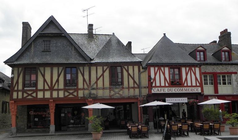 Maison à porche : le rez-de-chaussée s'organise en deux travées, et le premier étage, en pans de bois, est percé d'une unique fenêtre. La toiture en ardoise forme une croupe. À l'instar de sa voisine du n°12, la construction remonterait vraisemblablement aux XVIe–XVIIe siècles et, comme les autres maisons à porche, assurait commerce au rez-de-chaussée et habitation à l'étage. La profondeur de ces logements est particulièrement remarquable. Les porches en pan de bois semblent par ailleurs indépendants du reste des bâtiments en pierre : ici, la couverture du porche est distincte de celle de la maison.