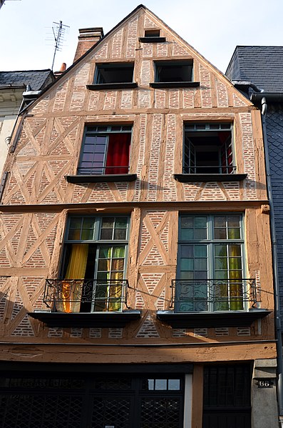 La maison, située au 68 rue Colbert dans le Vieux-Tours (Indre-et-Loire), est une ancienne maison particulière à pans de bois. Elle a été construite au XVe siècle. Le bâtiment comprend un rez-de-chaussée en maçonnerie surmonté de deux étages et d'un comble, le dernier niveau étant aménagé dans la toiture. Au rez-de-chaussée subsiste une porte dont le vantail conserve encore son râcloir. Les étages supérieurs sont revêtus d'ardoises ; le pignon sur rue avait, dans les années 1940, un essentage d'ardoises qui a été déposé lors d'une restauration ultérieure. Les deux baies du premier étage possèdent chacune un balcon en fer forgé, probablement ajouté au XVIIIe siècle. La façade sur la rue et la toiture ont été inscrites au titre des monuments historiques par arrêté du 8 juillet 1946. La rue Colbert, qui reprend le tracé d'une voie antique, fut jusqu'au XVIIIe siècle l'artère principale reliant la basilique Saint-Martin au secteur de la cathédrale Saint-Gatien. Des études et guides sur le patrimoine tourangeau, ainsi que la base Mérimée, documentent cette maison et fournissent des informations complémentaires.
