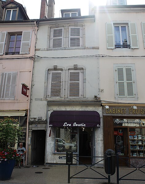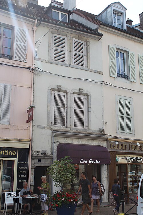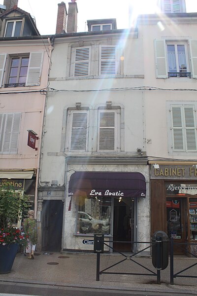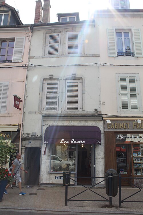 Reconstruction de la première moitié du XVIIIe siècle dans le quartier des marchands, cette maison conserve plusieurs éléments d'époque. Un escalier en bois à balustres, daté du milieu du XVIIIe siècle, en constitue un élément intérieur notable. Une plaque de cheminée porte la date 1725. Le rez-de-chaussée a été remanié au XXe siècle pour accueillir une boutique.