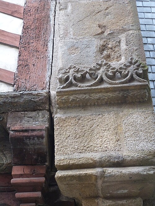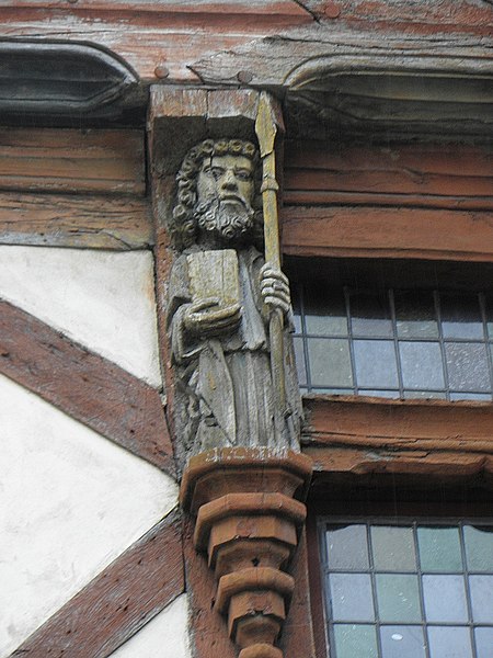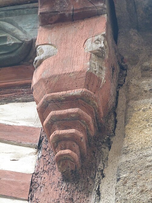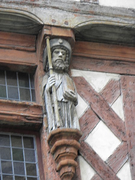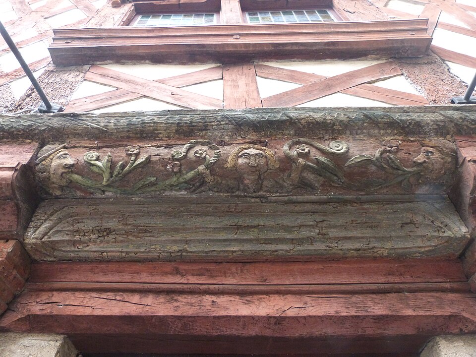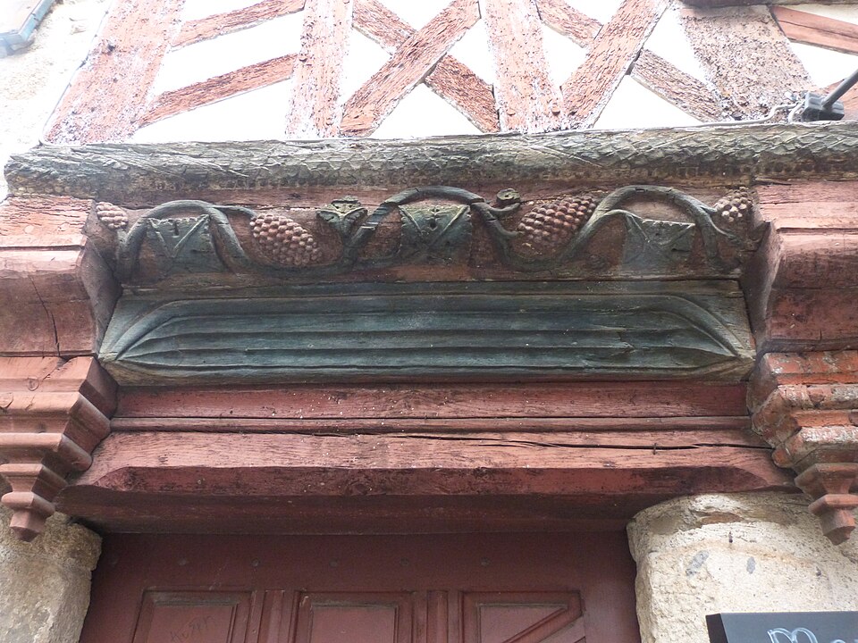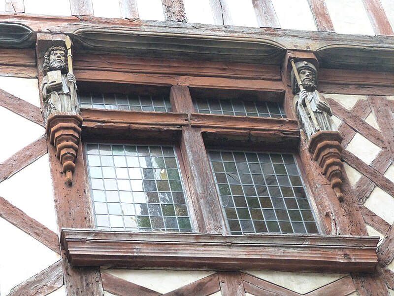 La façade de cette maison a conservé sa disposition ancienne, y compris au rez-de-chaussée, ce qui est assez rare. La construction est entièrement en pan de bois, les principaux éléments structurels restant apparents. Les sablières, les montants des fenêtres et les consoles sont moulurés et sculptés.