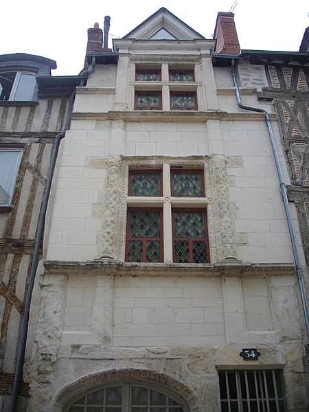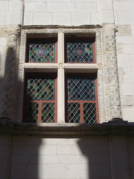 Le rez-de-chaussée et l'étage conservent un décor de solives sculptées sur les plafonds. Les poutres de rive, en chêne, reposent sur des corbeaux le long des murs pignons mitoyens et soutiennent les solives transversales. Ces solives présentent, sur toute la longueur de leur face inférieure, des moulures en plis de serviette séparées par des cartouches circulaires ornés de motifs géométriques, de végétaux stylisés et de profils humains. Les cartouches divisent les solives en deux, trois ou quatre parties et ornent également leurs extrémités, constituées dans ce cas par un demi-cercle.