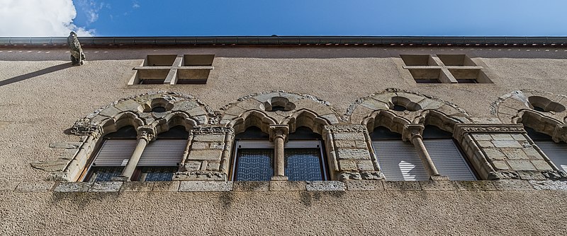 La maison présente une série de sept fenêtres à doubles lancettes trilobées dont la plupart des colonnettes, des sommiers et le bandeau à la base ont été enlevés pour permettre l'installation de grandes fenêtres modernes. Les arcs en tiers-point de ces ouvertures retombent sur des piédroits ornés d'une frise sculptée. Un des corps de bâtiment peut être daté de la fin du XIIe ou du début du XIIIe siècle. Le corps principal, sur rue, a été construit dans le quatrième quart du XIIIe siècle, probablement dans les années 1280, peut-être pour la famille de Vayrols, dont la propriété n'est toutefois attestée qu'aux XVe et XVIe siècles. L'édifice a connu d'importants remaniements ultérieurs. Entièrement détruit en 1986, il a vu les fenêtres protégées au titre des M.H. remployées dans la nouvelle façade pastiche.