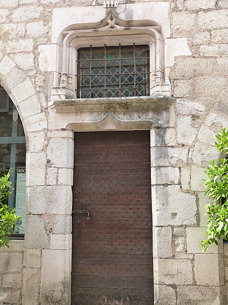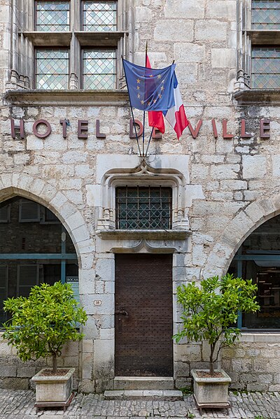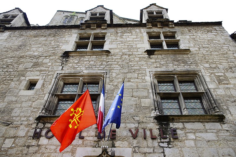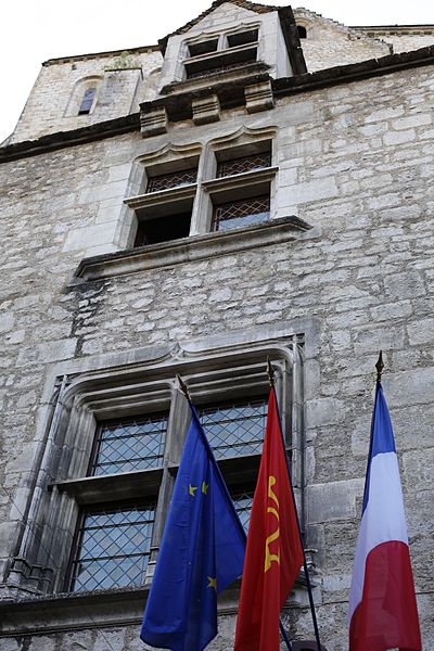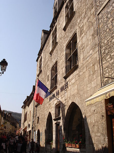 La maison conserve, malgré quelques modifications mineures, l'essentiel de son aménagement primitif. Au rez-de-chaussée, une pièce principale, qui sert de vestibule, est largement éclairée par deux baies en tiers-point ; entre elles s'ouvre la porte d'entrée surmontée d'une imposte, avec des piédroits moulurés et des linteaux en accolade. À gauche de cette salle se trouve une autre pièce qui devait servir d'écurie. Depuis la pièce principale, un double escalier droit donne accès à un escalier à vis Saint-Gilles desservant les étages et le comble. La cour intérieure, située à mi-étage, permet d'accéder à la cuisine et au cellier, partiellement creusé dans le rocher. Au premier étage se trouvent une grande salle communiquant avec la cuisine et, à mi-étage, deux chambres. Le deuxième étage et l'étage des combles sont divisés en chambres à coucher. La maison a peut-être servi d'hôtellerie pour pèlerins. Partagée entre plusieurs propriétaires aux XVIIe et XVIIIe siècles, elle retrouve son unité au début du XIXe siècle. L'abbé Mazot l'achète ensuite et y installe le presbytère de Rocamadour ; en 1854 elle est acquise par l'évêché de Cahors, puis, à la fin du XIXe siècle, affectée aux Frères de l'Instruction chrétienne. La commune en est propriétaire de 1905 à 1920, avant un rachat par l'association diocésaine. Inscrite à l'inventaire supplémentaire des Monuments historiques en mars 1925, elle subit en avril un incendie qui détruit « tout ce qui était bois ou combustible ». Revendue à la commune en 1954, elle est restaurée par l'architecte en chef des Monuments historiques Michel Mastorakis (1911-2006) pour devenir le nouvel hôtel de ville en 1959 (J. Rocacher, 1979). L'état primitif du corps de bâtiment sur rue peut dater de la fin du XIIe siècle ou du XIIIe siècle. La construction de la demeure, vraisemblablement à la fin du XVe siècle ou au début du XVIe siècle, a nécessité le regroupement de trois parcelles médiévales.