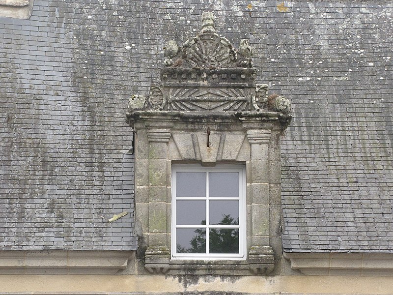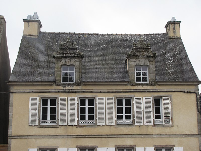 Édification de la maison avec des lucarnes à baies rectangulaires.