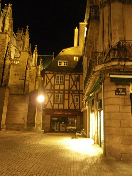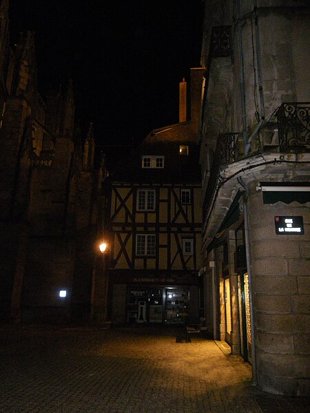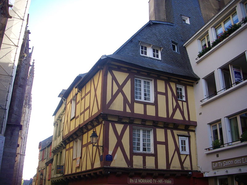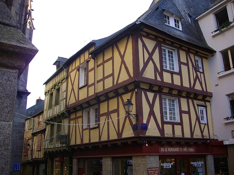 Ensemble de deux maisons, dont l'une appelée La Buanderie, construites aux XVe et XVIe siècles. Elles sont signalées avec un appentis dans le rentier du domaine ducal de Vannes réalisé entre 1455 et 1458. Elles sont regroupées avant 1677, date à laquelle les archives de la réformation du domaine les mentionnent comme appartenant à Jean Goualesdre, notaire royal et procureur au siège présidial de Vannes. La cheminée sur le mur gouttereau sud de la maison sur rue date du XVIe siècle, tandis que celle de la seconde maison pourrait être un peu plus ancienne, de la fin du XVe siècle. Les deux maisons étaient reliées par une galerie attestée en 1677, qui surplombait alors une ruelle parallèle à la rue Saint-Guénael et qui fut fermée à la même époque selon les archives. La travée sud de la façade ouest et une trace dans le mur sud intérieur du rez-de-chaussée témoignent de l'existence de cette ruelle. Les archives évoquent également une cour postérieure qui a pris la place d'une ancienne maison, dont les vestiges d'une cheminée, peut-être du XVIe siècle, sont conservés. La seconde maison aurait été surélevée de deux niveaux en pan de bois au XVIIe siècle; ces niveaux sont mentionnés dans le procès-verbal de 1719, dressé après la vente des deux maisons au sieur Le Verger du Téno. À cette époque, la maison était louée à plusieurs personnes, dont un cabaretier. La partie est de la maison sur rue a été surélevée par un comble à surcroît. Les escaliers des deux maisons sont modernes, installés à l'emplacement des escaliers anciens. La pose d'une devanture en menuiserie date de 1844, suite à une demande de madame Jehanno qui fut accordée. Les façades sur rue ont été enduites de ciment au milieu du XXe siècle, la disposition du pan de bois ayant été restituée en peinture. La boutique du rez-de-chaussée a été modernisée à la même période. L'ensemble de la partie liée à l'ancienne cour a été reconstruit au XXe siècle.