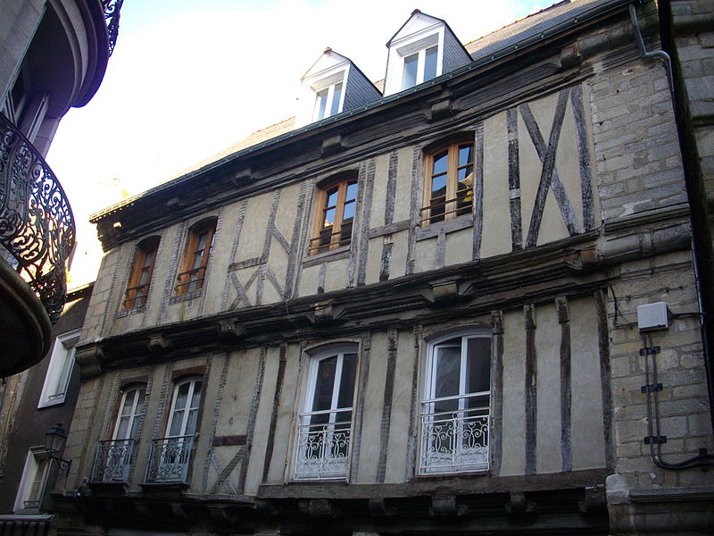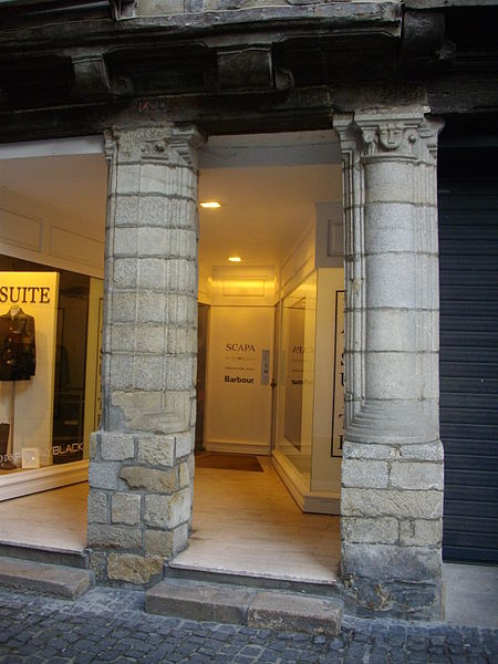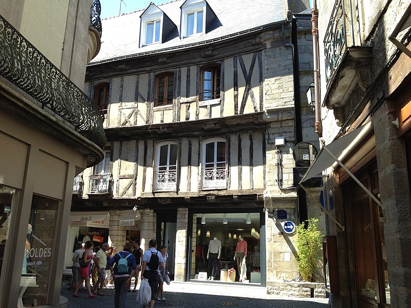 Maison à trois étages en encorbellement, marquée par de grosses poutres moulurées et sculptées sous chaque avancée. Au rez-de-chaussée, la façade présentait deux animaux fantastiques rampants dont la gueule servait d'orifice à deux tuyaux de descente en torsade. Une inscription portée dans le bois de la sablière haute du rez-de-chaussée indique : "Pax hvnc domvm et omnibvs habitantibvs in ea. Jehan foliart ma faict faire lan 1560", attestant la construction pour Jehan Foliart en 1560. L'emplacement figure dans le rentier du domaine ducal 1455-1458 parmi un ensemble de quatre maisons qui s'étendaient depuis le 16 de la rue jusqu'à ce lieu ; la maison actuelle paraît avoir été reconstruite au XVIe siècle à l'emplacement de la dernière de ces maisons. Dans la réformation de 1677, elle correspond au logis sur rue, à une cour et à une petite maison en appentis à l'arrière, et appartient alors à Sébastien Foliard, sieur de Trevinec. Au XVIIIe siècle, l'édifice est doublé par un corps postérieur bâti sur une partie de la cour mentionnée en 1677, et il est probable que les ouvertures de la façade sur rue ont été reprises à cette époque. Des lucarnes sont ajoutées sur le toit à la fin du XIXe siècle. Au XIXe siècle, un des étals — le second à l'ouest — est supprimé ; il était encore visible vers 1960 puis a disparu dans la seconde moitié du XXe siècle, comme la porte d'entrée. L'agrandissement des magasins au XXe siècle entraîne la disparition de la maison en appentis figurant sur le cadastre de 1844 et la couverture complète de la cour au niveau du rez-de-chaussée.