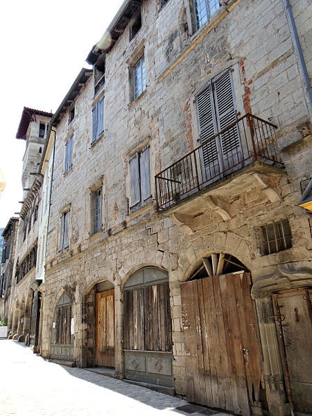 Cette maison illustre la construction civile médiévale et réunit plusieurs corps de bâtiments d'époques différentes. Des dégagements récents ont permis de retrouver l'unité architecturale du corps le plus ancien, sans doute une maison indépendante de la première moitié du XIIIe siècle. Ce corps trapézoïdal à deux étages, couvert d'un toit à deux versants, présente une façade sur rue qui, malgré des remaniements du XIXe siècle, conserve son appareil en pierre de taille et les éléments permettant de reconstituer son ordonnance d'origine : trois niveaux séparés par des cordons moulurés saillants au niveau des appuis (le premier cordon reposait sur une série de modillons sculptés), une série d'arcades au rez-de-chaussée correspondant aux boutiques et deux étages comportant chacun quatre fenêtres géminées en arc brisé reliées par des cordons d'imposte. À la fin du XVe siècle, les arcades brisées du rez-de-chaussée furent remplacées par des arcades segmentaires et l'on ajouta une porte avec linteau décoré et une archivolte en accolade ; la plupart des fenêtres géminées furent transformées en croisées. L'élévation sur cour a été remontée en moellons à la fin du XVe siècle. Le premier étage comprenait deux pièces séparées par une cloison en pan de bois et torchis, appuyée contre un pilier central maçonné ; cette cloison conserve d'importants vestiges de peintures murales représentant des griffons dans des médaillons entrelacés et une frise supérieure de chevaliers armoriés, décor datable de la première moitié du XIIIe siècle. On observe également quelques traces d'aménagements intérieurs de la fin du Moyen Âge et du XVIIe siècle. L'escalier à vis, portant noyau, a été construit dans une cage ovoïde en demi hors-œuvre sur la façade latérale, à l'origine tournée vers la rue ; sa porte en arc brisé et ses différentes ouvertures situent sa construction à la fin du XIVe ou au début du XVe siècle. Il est considéré comme l'un des premiers exemples d'escaliers à vis ayant remplacé à Saint-Antonin les anciens escaliers droits en bois ou en pierre. Le corps principal sur la rue remonte au troisième quart du XIIIe siècle et, selon des datations dendrochronologiques, probablement aux années 1252-1264. Des critères formels laissent penser que ce corps fut remanié à la limite des XVe et XVIe siècles — porte d'entrée, arcades segmentaires, cheminée, escalier en vis — mais l'analyse des bois situe la construction de l'escalier en vis au début du XVe siècle, après 1410, et les modifications de la façade au troisième quart du XVIe siècle ; ces datations sont toutefois considérées comme moins convaincantes dans ce cas. D'autres corps, notamment un corps en pan de bois, furent progressivement ajoutés aux XVe ou XVIe siècles. L'ensemble a subi d'importants remaniements ultérieurs, en particulier au XIXe siècle.