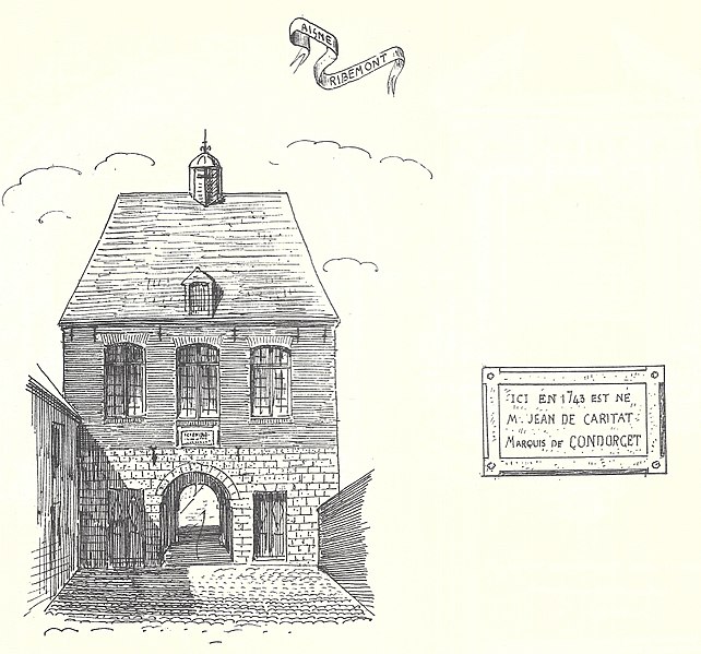 La maison natale de Marie-Jean-Antoine-Nicolas de Caritat de Condorcet, mathématicien et philosophe (1743-1794), se situe à Ribemont dans l'Aisne. Elle appartient à une très ancienne famille de la noblesse dauphinoise; le père de Condorcet avait reçu le bourg de Ribemont comme garnison d'affectation. Demeure sobre en brique et pierre, elle présente un intérêt architectural modeste mais une valeur historique exceptionnelle. Condorcet y est né et y a séjourné régulièrement jusqu'en 1775; il y a probablement reçu Turgot et d'Alembert. Vers 1880, la maison devint la propriété du romancier naturaliste Léon Hennique (1850-1935), qui y accueillit notamment Émile Zola et Alphonse Daudet. Partiellement détruite pendant la Première Guerre mondiale, elle perdit alors la totalité de ses décors intérieurs et de son mobilier du XVIIIe siècle, encore en place avant 1914. Après la dernière guerre, une longue période d'abandon a aggravé son état : les intérieurs ont été profondément dénaturés et l'édifice se trouve aujourd'hui en grand délabrement. Le bâtiment a été inscrit au titre des monuments historiques en 1990.