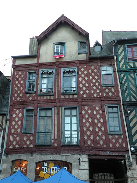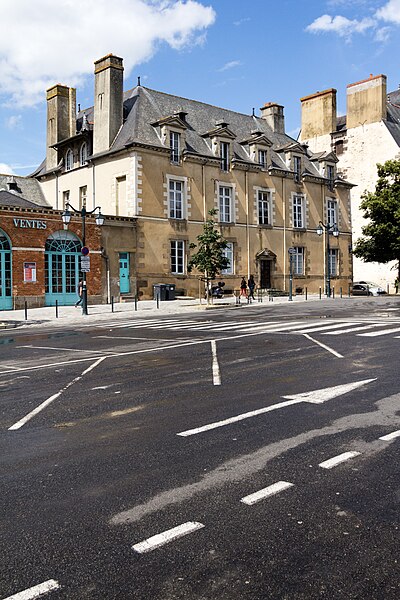 Située au 9 de la place Sainte-Anne, au cœur du centre historique de Rennes (Ille-et-Vilaine, Bretagne), la maison dite hôtel de Bretagne est connue sous ce nom depuis 1687 et portait auparavant l'appellation Rat Vizé. Elle est liée à la famille des Bretagne, bourgeois de Rennes. Daté de 1586, l'édifice à pans de bois comprend un rez-de-chaussée et deux étages, soit trois niveaux au total. Au-dessus du rez-de-chaussée court une double ligne de poutres apparentes finement sculptées ; la ligne inférieure est divisée en quatre panneaux : les trois premiers présentent des rinceaux de style Renaissance, le dernier montre deux écussons accolés, dont l'un porte la date de 1586. L'ensemble a été inscrit au titre des monuments historiques le 9 octobre 1962.