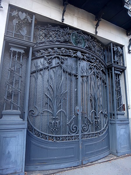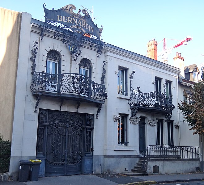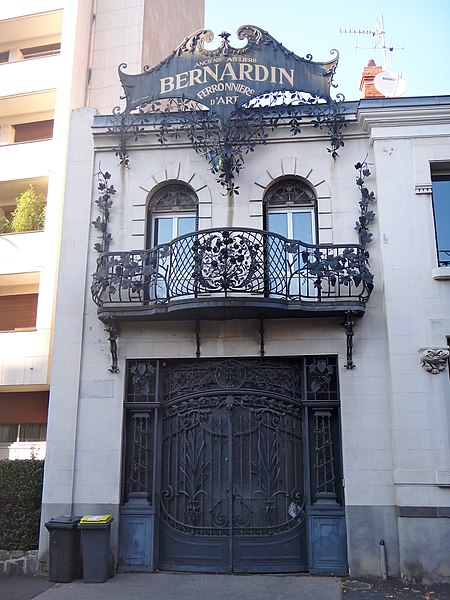 Construite en 1890 pour le sculpteur Jean-Baptiste Gourgouillon, la maison fut ensuite acquise par la famille Bernardin, qui comptait deux ferronniers ayant renoué avec la tradition du fer forgé auvergnat dans le style de leur époque. Les ferronneries de la façade sur rue, qui lui confèrent son originalité, sont leur œuvre et ont été réalisées en plusieurs campagnes entre 1890 et 1920. L'enseigne Modern'style est soutenue par un décor végétal "au naturel" en fer forgé. L'esprit de l'Art nouveau se manifeste surtout par les deux balcons du premier étage, aux formes cintrées évoquant le XVIIIe siècle, et particulièrement par le balcon gauche dont l'ornementation végétale témoigne de la même habileté que celle de l'enseigne. La grande porte qui donnait accès aux ateliers daterait des années 1920 et marque un certain retour au classicisme.