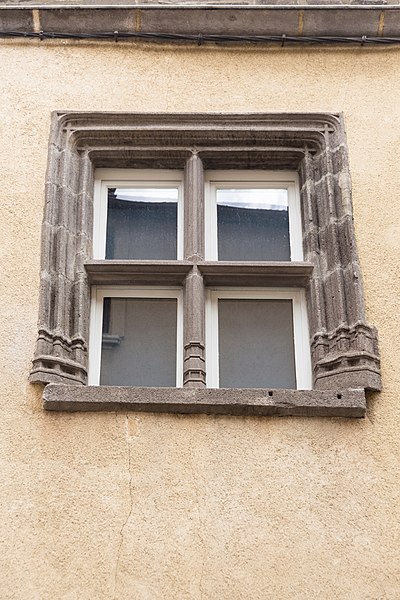 La façade sur rue, de l'époque gothique, se compose d'une tour en saillie logeant l'escalier et du mur méridional de la maison, qui présente une large baie au premier étage. La tour abrite l'escalier et s'ouvre au rez-de-chaussée sur la rue par une porte gothique. Le cadre de cette porte est orné des moulures caractéristiques de l'époque flamboyante et surmonté d'un écusson portant un monogramme. La grande fenêtre de la façade est du même style que la porte et présente une double voussure formée d'une fine mouluration. Les phases de construction retenues concernent la façade et, le cas échéant, l'escalier.