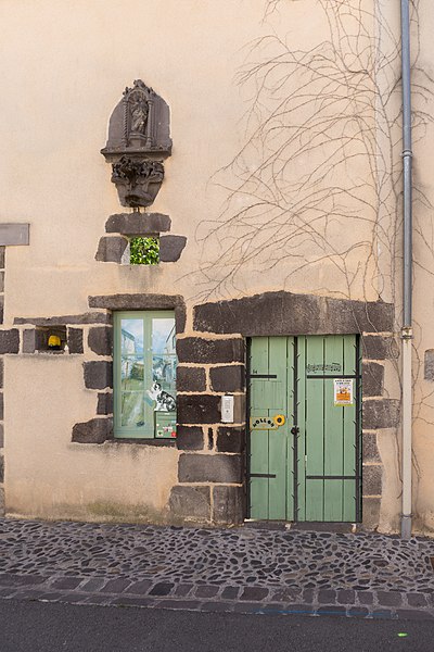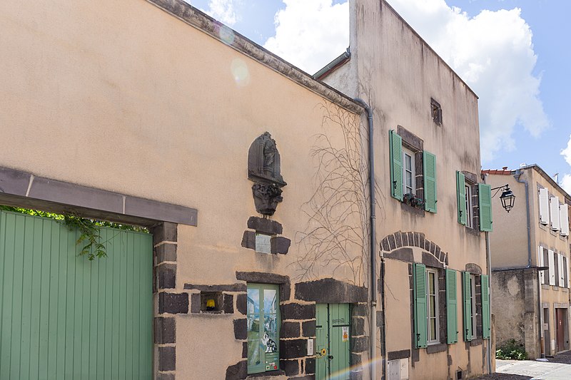 À l'angle de la façade se trouve une statue de la Vierge qui semble dater des premières années du XVIe siècle. Elle représente la Vierge tenant l'Enfant sur le bras et est logée dans une niche surmontée d'une fine archivolte, encadrée de chaque côté par deux petites colonnes torsadées.