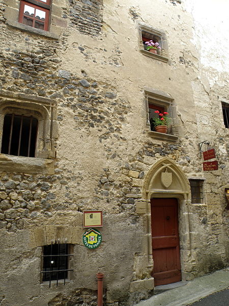 L'immeuble présente un décrochement sur la rue des Boucheries, peu après l'emplacement de l'ancienne porte fortifiée. Un masque sculpté orne l'angle. La façade longeant la rue comporte, vers son milieu, une tourelle élevée au-dessus du reste du bâtiment. Celle-ci s'ouvre par une porte à encadrement mouluré : un tore repose sur des bases prismatiques et l'arc brisé inscrit un tympan chargé d'un écu aux armoiries bûchées.