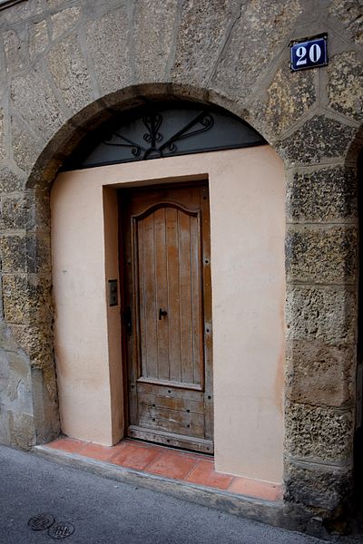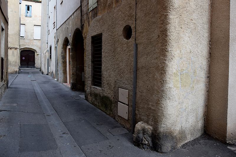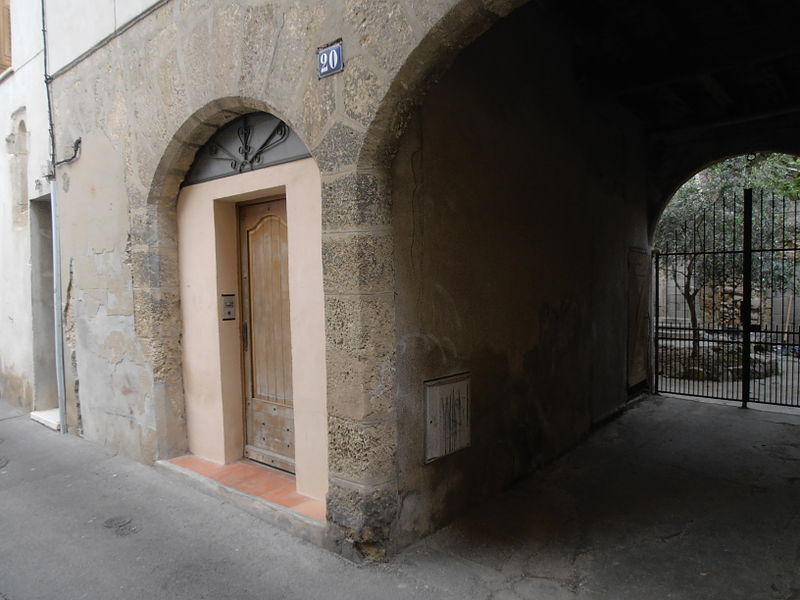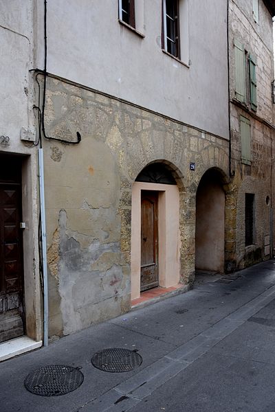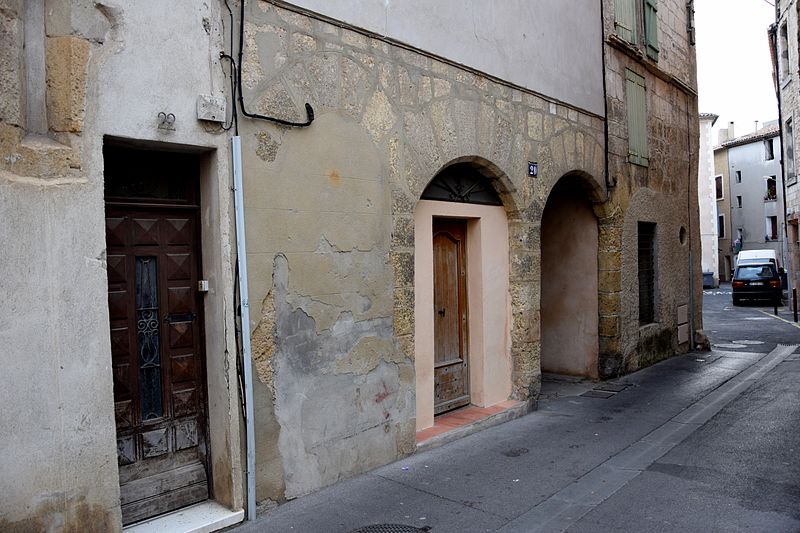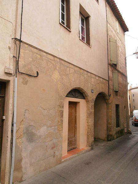 La façade, entièrement en pierre de taille, présente un rez-de-chaussée et un premier étage séparés par un bandeau mouluré, surmontés d'un deuxième étage bas formant grenier. Le rez-de-chaussée comportait une série d'arceaux à grands claveaux, dont deux seulement sont actuellement ouverts. Au premier étage se trouvent une fenêtre à trois arcatures séparées par deux colonnes intermédiaires et une fenêtre à une seule arcature. Les profils visibles au premier étage paraissent dater du XIIIe siècle.