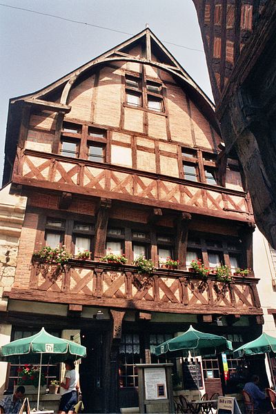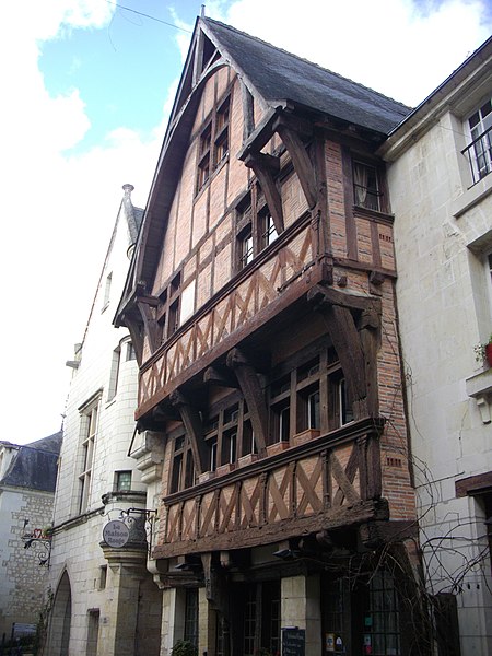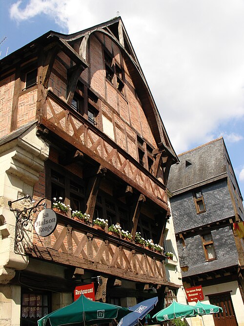 La Maison rouge est une demeure médiévale située au 38, rue Voltaire à Chinon (Indre-et-Loire), à l'angle du Grand Carroi, place centrale de la ville à l'époque médiévale. Elle a été construite sans doute au XIVe siècle et sa façade sur rue conserve l'essentiel de son aspect ancien, tandis que l'intérieur a été profondément remanié et ne garde plus la distribution d'origine. L'édifice comprend un rez-de-chaussée, deux étages en encorbellement et un comble ; l'ossature est entièrement en pans de bois, les remplissages étant en briques qui lui valent son surnom. La façade se caractérise par une composition horizontale — rangées d'ouvertures, bandeaux d'allège ornés de croix de saint André et sablières en encorbellement — disposition rare en Touraine mais fréquente dans des régions plus septentrionales. Entre les baies du deuxième étage, le hourdis de briques dessine des motifs géométriques. Le pignon méridional est protégé par une avancée de toit, appelée localement « capucine ». Le mur latéral en pierre de taille semble être un remaniement postérieur. Au Moyen Âge et à l'époque moderne, le rez-de-chaussée pouvait accueillir trois échoppes contiguës. La dénomination « Maison rouge » renvoie à la teinte des briques et contraste avec la maison bleue voisine. L'édifice a été inscrit au titre des monuments historiques par décret du 12 novembre 1926.