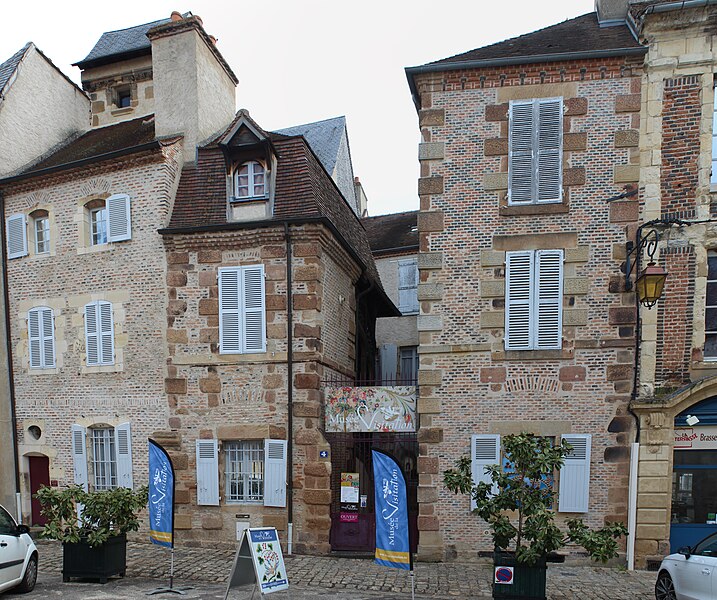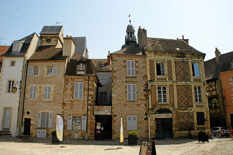 Maison (rue des Orfèvres, XVe siècle ; place de l'Ancien-Palais, XVIIe siècle). Ces immeubles faisaient partie du groupe des maisons de ban où le duc de Bourbon faisait vendre ses vins. L'une des particularités de la maison est un rare escalier en bois à balustres moulurés, unique exemple conservé à Moulins. L'escalier est disposé autour d'un noyau creux, dans une cage rectangulaire entièrement ouverte vers l'extérieur ; sa charpente repose sur les poteaux d'ossature. La balustrade et la main courante se prolongent sur les galeries d'étage.