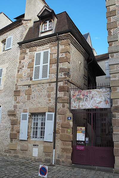 Histoire : l'édifice, daté des XVe et XVIIe siècles, appartient à partir de 1461 à Guillaume Moreau, secrétaire de la duchesse du Bourbonnais, puis passe entre de nombreux propriétaires. En 1937, la Société d'émulation du Bourbonnais acquiert l'immeuble et y ouvre, en 1939, un musée d'ethnographie, devenu en 2004 le musée de la Visitation. En 1990, face à la menace de disparition du monastère de la Visitation de Moulins, Gérard Picaud, en accord avec Mère Françoise-Bernadette Lara, obtient que le Musée Bourbonnais accueille une salle consacrée à l'ordre de la Visitation. Avec l'aide d'une quinzaine de monastères, il rassemble 602 objets — souvenirs des fondateurs, ouvrages, objets d'art et de dévotion — et, le 11 décembre 1992, l'exposition permanente "Regard sur la Visitation" ouvre dans trois nouvelles salles du Musée Bourbonnais.