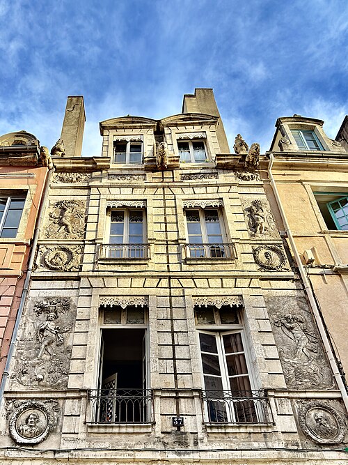 Ces personnifications évoquent la cyclicité de la nature et reflètent l'humanisme et l'harmonie esthétique de l'époque. Des gargouilles en forme de lions assurent l'évacuation des eaux tout en renvoyant à des valeurs de force et de protection, et des pots à feu, motif rare à Chalon, suggèrent l'éternité et la vitalité. L'ensemble du décor confère à la maison un caractère solennel et prestigieux.
