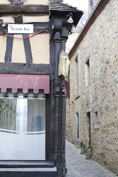 Poteau en bois et sa statue à l'angle de la maison : classement par arrêté du 12 août 1945