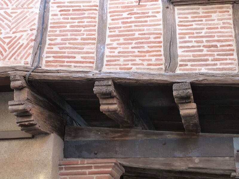 À l'extérieur, la maison présente des "postats". Les extrémités des solives du premier étage, terminées en quart de rond, forment une saillie sur la rue et servent de consoles aux colombages. Sur la façade principale, ces derniers forment de nombreux panneaux carrés et triangulaires où des briques, disposées dans différents sens, créent une grande variété de motifs. La plupart des fenêtres sont en bois mouluré et à meneaux ; celle qui s'ouvre sur la rue du Port a des croisillons sculptés dont l'intersection porte un petit buste d'homme. La façade donnant sur la rue de la Mairie repose sur de gros piliers en bois. La maison semble avoir été construite au XVIIe siècle.