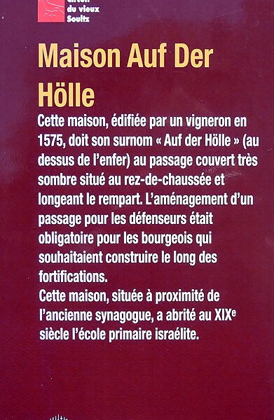 L'Ancien Béguinage, dit maison sur la Hoelle, est un monument historique situé au 7, rue des Bouchers à Soultz‑Haut‑Rhin (Haut‑Rhin). Construite en 1575 pour un vigneron et agriculteur portant les initiales H.B., elle aurait, selon la tradition, abrité un béguinage à une époque inconnue. Élevée sur le mur d'enceinte intérieur de la ville, elle comprend au rez‑de‑chaussée un passage couvert public permettant de rejoindre la rue des Sentinelles. Ce passage, très sombre, a donné son nom à la maison — « sur l'enfer » (Hoelle en allemand), parfois rendu en allemand par Auf der Hölle, littéralement « maison au‑dessus de l'enfer ». Une poutre du passage porte la date 1661 et les initiales C.I., attribuées à un propriétaire ultérieur, Caspar Yehle. Acquise en 1837 par la communauté israélite, la maison a ensuite servi d'école israélite. Le toit et la cage d'escalier ont été refaits. L'édifice est inscrit au titre des monuments historiques depuis 1988.