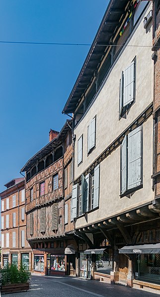 Implantées dans cette rue, ces maisons illustrent l'architecture régionale. Elles présentent deux étages en encorbellement l'un sur l'autre : le premier très avancé, le second moins saillant et surmonté d'un galetas en clair-étage, appelé "souleilhé". Les façades, à pans de bois et croisillons, sont garnies de briques posées tantôt horizontalement, tantôt obliquement. Le n°8 conserve une rampe d'escalier portant la date de 1601. Ces maisons, de la même époque, représentent le type "moyen" des maisons d'Albi à la fin du XVIe siècle. L'une d'elles a conservé les sculptures de ses pans de bois.