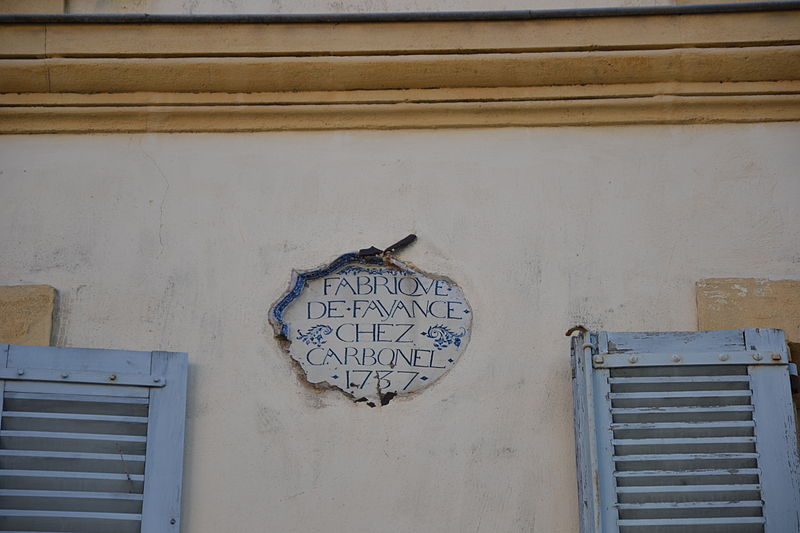 Plaque de faïence datée de 1757 ayant servi d'enseigne à la fabrique de carbonel, encastrée dans la façade : inscription par arrêté du 2 décembre 1932