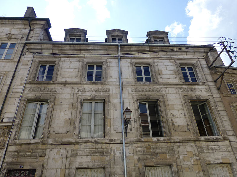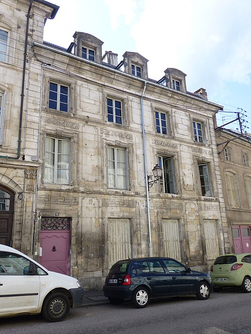 L'édifice se compose de deux corps distincts : un bâtiment postérieur destiné aux communs et un logis sur rue reconstruit à la fin du XVIIIe siècle. La porte d'entrée, ouverte dans la première travée, conserve son vantail à panneau chantourné, une imposte avec grille en fer forgé et un heurtoir également en fer forgé. Le bâtiment postérieur daterait de la fin du XVIIe ou du début du XVIIIe siècle ; la date 1768 portée sur le linteau de la porte piétonne semble correspondre à une lecture altérée de 1708. Le logis sur rue, quant à lui, est identifiable comme reconstruction de la fin du XVIIIe siècle au vu du décor lié aux baies.