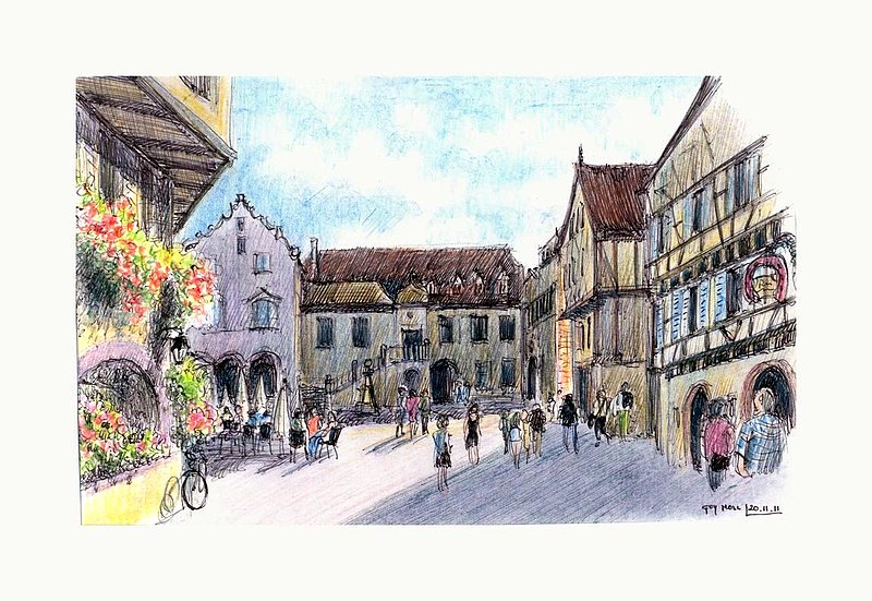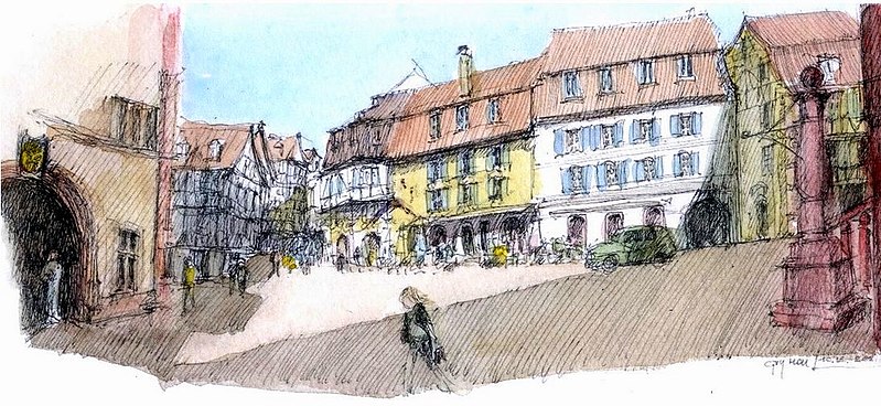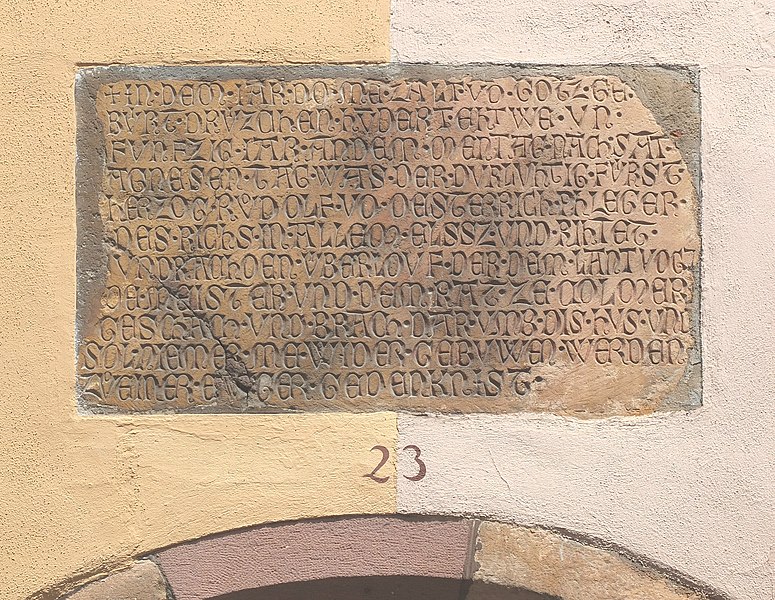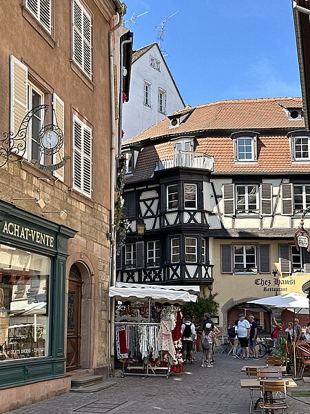 La maison zum Oesterreich, située aux 23-25 rue des Marchands à Colmar (Haut-Rhin), est un immeuble datant du milieu du XVIe siècle, daté en source de 1532. Plusieurs constructions distinctes y ont été réunies au XVIIIe siècle sous une toiture unique à comble brisé. Sur la partie gauche de la façade, les étages en encorbellement sont construits en pans de bois et soulignés par des bandeaux de bois moulurés. Un oriel d'angle, en tourelle polygonale, repose sur des consoles en pierre et est actuellement couronné par un balcon. La partie centrale présente, au deuxième étage, un niveau également construit en pans de bois. Le rez-de-chaussée s'ouvre par de larges arcades, destinées à donner accès et lumière à des boutiques. Au-dessus de la grande arcade d'entrée, dans la partie droite de la façade, une plaque de pierre encastrée relate la démolition en 1358 d'une maison antérieure ordonnée par le duc Rodolphe d'Autriche et la défense de la reconstruire, en mémoire d'un soulèvement. L'oriel, l'élévation et la toiture de l'édifice font l'objet d'une inscription au titre des monuments historiques depuis le 18 juin 1929.