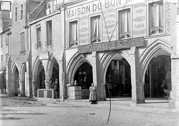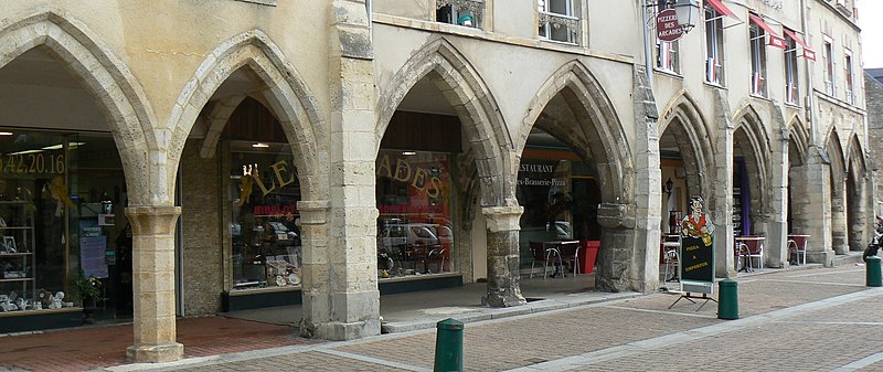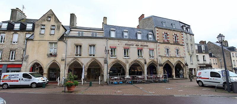 Les maisons à arcades de la place de la République à Carentan-les-Marais (Manche, Normandie) forment un ensemble médiéval situé du n°20 au n°24 bis, dans le quartier de l'église de l'ancienne commune de Carentan. Ces maisons, partiellement inscrites au titre des monuments historiques, se caractérisent par des arcades gothiques et conservent des vestiges du XVe siècle. Une lithographie du début du XIXe siècle montre qu'elles avaient alors conservé leur volume originel, avec pignons et souches de cheminée médiévales, seules les fenêtres ayant été repercées et les lucarnes refaites. Aujourd'hui, la maison du n°24 bis présente un pignon triangulaire et des fenêtres à meneaux d'origine. Les n°24 et 22 ont vu leurs niveaux repris à la hauteur du premier étage au‑dessus des cinq arcades médiévales. Le n°20 possède les arcades les plus remarquables, achevées par des fleurons, mais ses étages sont de qualité médiocre. En enfilade, le n°18 a été remanié et affiche une galerie couverte. Le n°16 conserve une porte en anse de panier ouvrant sur une maison en retrait des arcades ; côté cour, cette maison présente un escalier à vis du XVe siècle. Les arcades font l'objet d'une inscription au titre des monuments historiques par arrêté du 5 novembre 1927.