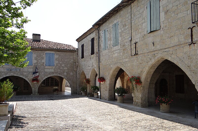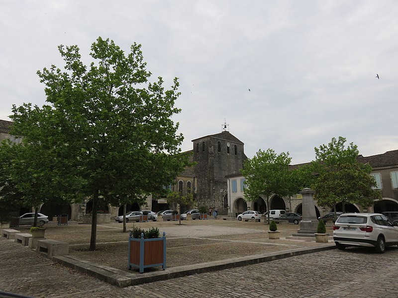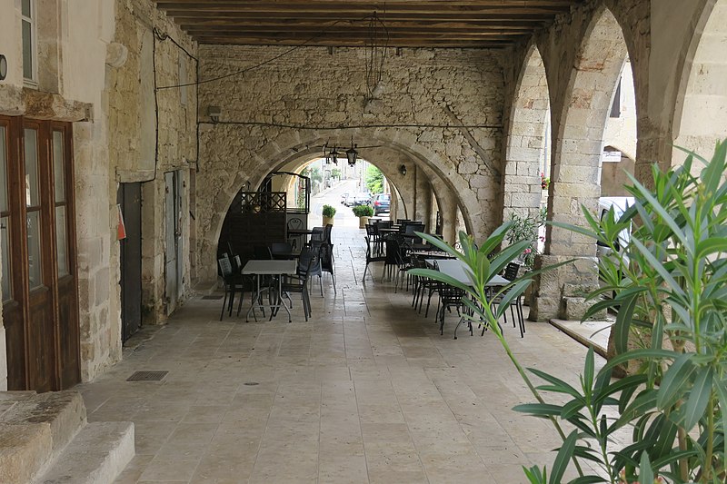 La place carrée est bordée de maisons à un étage, construites à différentes époques. Leur ordonnance d'arcades crée une circulation couverte au niveau de la place. Beaucoup de façades ont été remaniées, mais l'ensemble conserve son caractère historique et régional. Certaines parties remontent à la seconde moitié du XIIIe siècle ou à la première moitié du XIVe siècle ; des remaniements ultérieurs y ont été apportés.