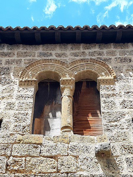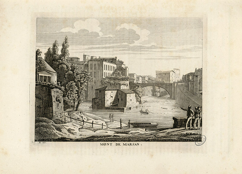 La Maison romane présente un rez-de-chaussée percé d'une porte basse voûtée et d'une étroite meurtrière, ainsi qu'un premier étage en encorbellement ajouré d'une fenêtre géminée romane avec une colonnette et un chapiteau à crossettes. Les maisons romanes de Mont-de-Marsan témoignent des origines médiévales de la ville; elles ont été bâties dans la seconde moitié du XIIe siècle, peu après sa fondation par le vicomte Pierre de Marsan, et possèdent une fonction défensive plus ou moins marquée. Deux d'entre elles se situent rue Maubec, voie longeant les remparts et probablement l'une des plus anciennes de la cité, qui se termine par une ruelle médiévale traversée par un pontet. La première, au 6 rue Maubec, est une maison forte en pierres coquillières, insérée dans le mur d'enceinte du XIIIe siècle et vraisemblablement intégrée au dispositif défensif côté Douze. Sa façade comporte deux murs parallèles de 90 cm d'épaisseur, distants d'environ deux mètres; au rez-de-chaussée une porte basse voûtée s'ouvre à côté d'une meurtrière, et le premier étage en encorbellement repose sur une rangée de corbeaux supportant une corniche qui dissimule des mâchicoulis percés de meurtrières. Cette maison est inscrite au titre des Monuments historiques par arrêté du 3 octobre 1929. La seconde, au 24 bis rue Maubec, est moins bien conservée ; elle est elle aussi en pierres coquillières et s'appuie côté nord sur le rempart de la première enceinte protégeant la Douze. Son intérieur conserve des peintures murales gothiques des XIVe et XVe siècles, à caractère civil et héraldique, aujourd'hui presque illisibles : une frise de losanges et de fleurs de lys et une fresque représentant quatre musiciens jouant du psaltérion, de la viole, de la guiterne et du tambourin. Ces décors intérieurs, qui suggèrent une origine noble, sont classés au titre des Monuments historiques par décret du 3 décembre 1984; la maison a servi au XVIIe siècle de grenier, au XIXe siècle de magasin, et a été acquise par la commune en 1981. Rue Lacataye se trouvent deux autres maisons romanes du XIIe siècle, situées non loin du donjon du même nom; l'une abrite le musée Dubalen et l'autre sert de logement de fonction dépendant de la Préfecture des Landes. La ville conserve par ailleurs d'autres vestiges médiévaux postérieurs aux maisons romanes, notamment des fortifications datant du XIIe ou XIIIe siècle inscrites aux Monuments historiques par arrêté du 21 novembre 1942, comme les remparts le long de la promenade du 21-Août-1944, une section des remparts et sa tour de guet à l'ancienne Cale des bains (29 rue Armand-Dulamon), et des vestiges sur le cours aval de la Douze ornés d'une maison crénelée présentant deux baies géminées à remplage. La rue des Arceaux conserve six passages couverts à colombage, dont deux accolés, qui relient les premiers étages d'immeubles appartenant au même propriétaire : l'un servait de réserve pour les denrées venues du port fluvial, l'autre faisait office de boutique donnant sur la rue de Saint-Sever (actuelle rue Léon-Gambetta). Le « donjon » de Lacataye, en réalité la juxtaposition de deux maisons fortes romanes construites en pierres coquillières au XIVe siècle, forme un ensemble massif et cubique dont l'un des bâtiments aurait été destiné à abriter la population et à servir de poste d'observation; l'édifice est inscrit aux Monuments historiques depuis le 22 juillet 1942. Enfin, la maison de l'éclusier, bâtie en pierres coquillières sur la rive droite du Midou et pourvue d'archères canonnières sur ses façades nord et est, serait à l'origine un moulin fortifié permettant de manœuvrer les écluses reliant le Midou et la Douze; incluse dans les remparts, elle est inscrite à l'inventaire des Monuments historiques depuis le 21 novembre 1942.