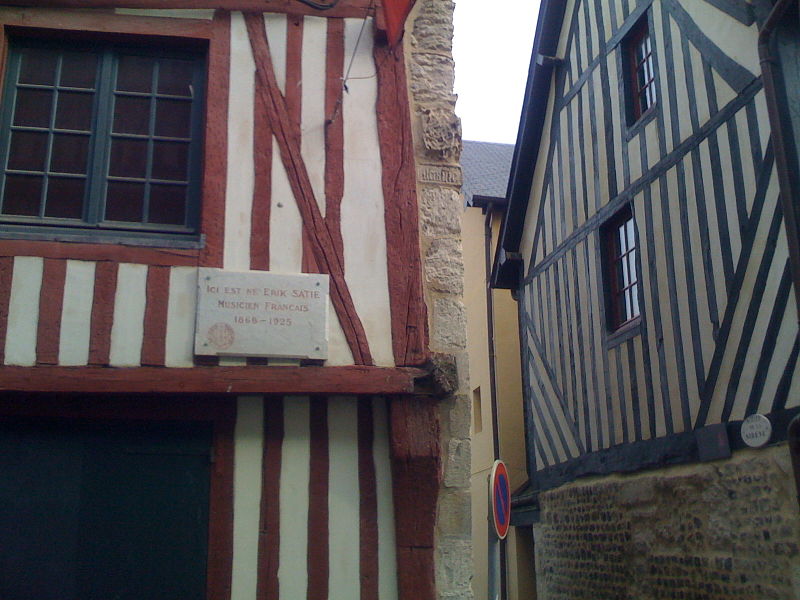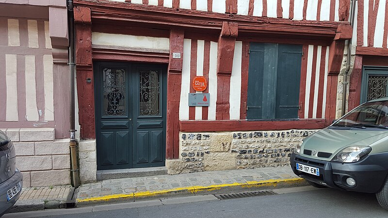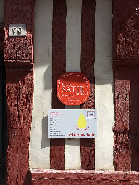 Les Maisons Satie sont les maisons natales du compositeur Erik Satie à Honfleur (Calvados) : un ensemble de trois maisons normandes à colombages rouges du XVe siècle, transformé en musée et labellisé « Maisons des Illustres », dont les façades et les toitures sont inscrites aux monuments historiques depuis le 26 octobre 1992. Satie, compositeur avant‑gardiste, est né à Honfleur en 1866 et a passé sa jeunesse entre Honfleur et Paris. Après la disparition de sa mère, son père se remarie avec une professeure de piano qui lui enseigne les bases et l'emmène à Paris, où il suit des cours au Conservatoire de Paris et s'installe à Montmartre. Il fréquente le milieu des cabarets, notamment Le Chat Noir, et côtoie des artistes et écrivains tels que Stéphane Mallarmé, Paul Verlaine, Maurice Ravel, Claude Debussy, Igor Stravinsky, Jean Cocteau et Pablo Picasso. Inauguré pour la Fête de la Musique le 21 juin 1998 grâce à des dons et financements de mécènes, l'ensemble des trois maisons a été aménagé en musée Satie, qui accueille le visiteur sur une inscription à l'entrée : « Ceci n’est pas un musée, ceci dit amusez‑vous... ». Le parcours muséal, mêlant scénographie sonore, lumineuse et visuelle, restitue l'univers singulier, fantaisiste et avant‑gardiste de l'artiste. La présentation rassemble meubles, objets divers, dessins, peintures et extraits de ses Mémoires d’un amnésique, ainsi que partitions annotées, sculptures, journaux, costumes et citations. Parmi les pièces emblématiques figurent ses collections de parapluies et de faux‑cols, collages et dessins, une chapelle, un bar et des films. Des dispositifs mécaniques et sonores complètent l'exposition : une poire mécanique évoquant les Trois morceaux en forme de poire, un piano à queue mécanique qui joue Gymnopédies et Gnossiennes, un métronome chantant « Satie est mort, vive Satie », Jonas le singe mécanique, phonoscope, carrousel du laboratoire des émotions, machines à écrire et divers effets sonores comme sirènes et roues de loterie. Lettres, partitions et autres documents historiques sont présentés aux côtés d'œuvres d'artistes ayant collaboré avec Satie, dont Pablo Picasso, Francis Picabia, Georges Braque, Jean Cocteau, René Clair, André Derain et Erté. Un ancien musée consacré à Satie, le Musée‑Placard, se trouvait auparavant au 6 rue Cortot à Paris.